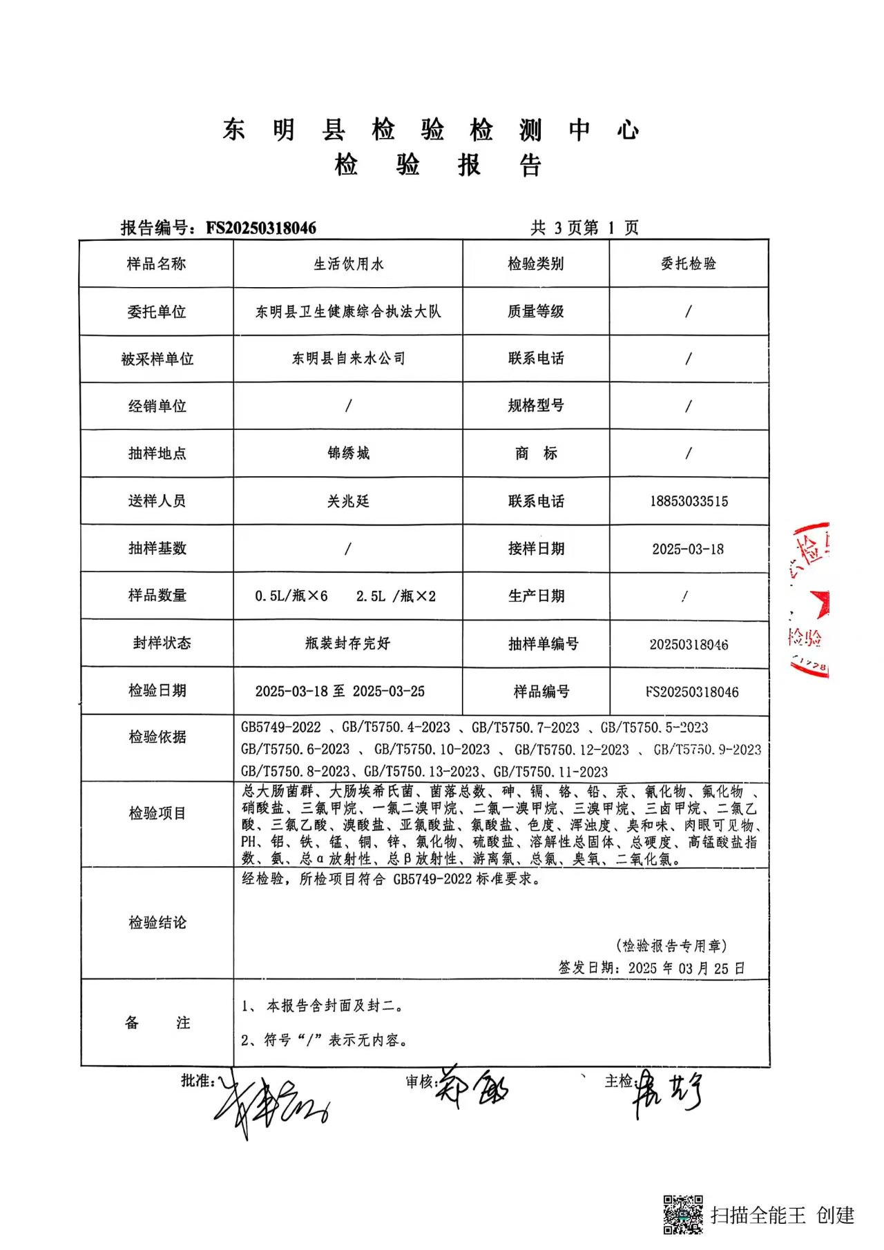 2025年第一季度管网末梢水检测锦绣城取水口(季检)