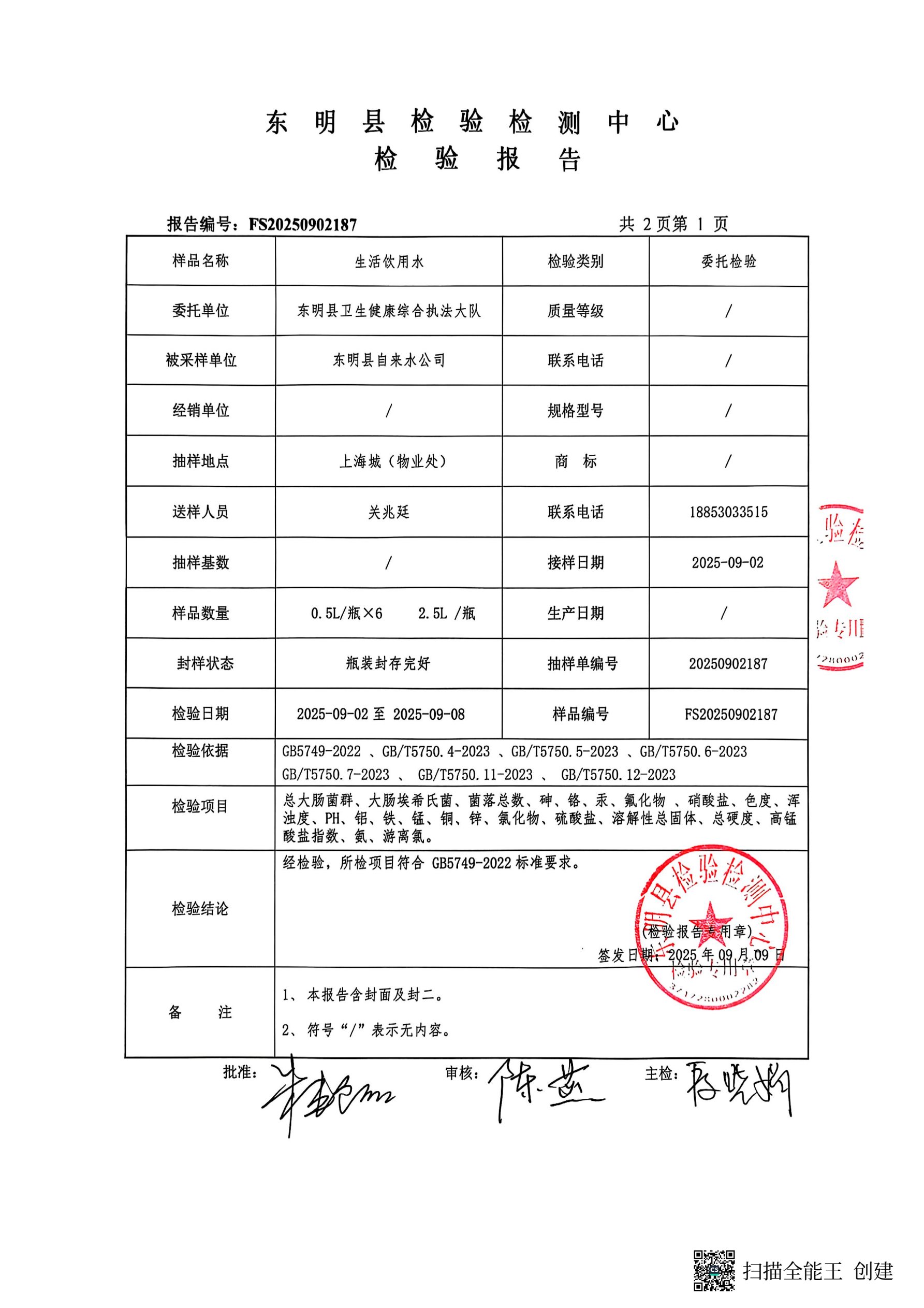 2025年第三季度管网末梢水检测上海城物业取水口(季检)