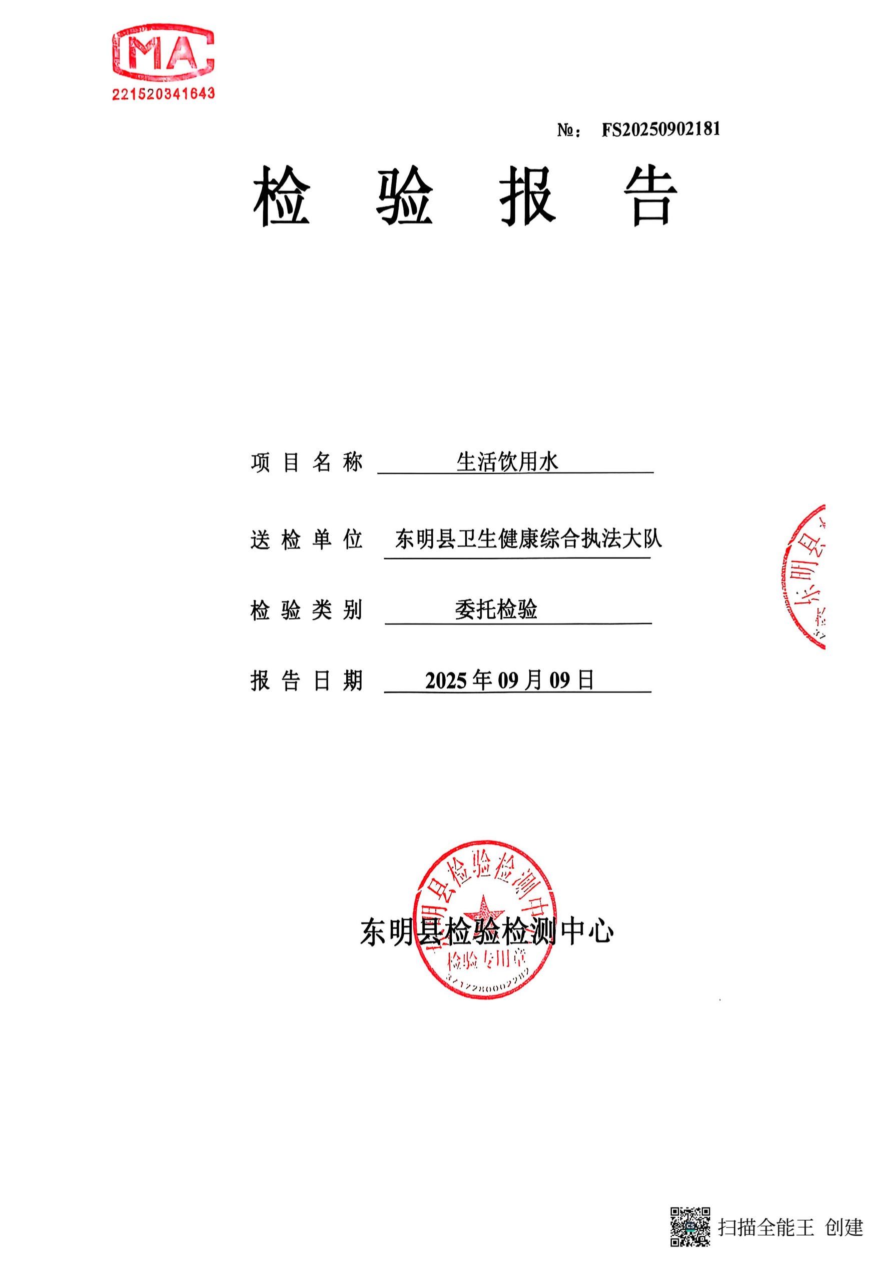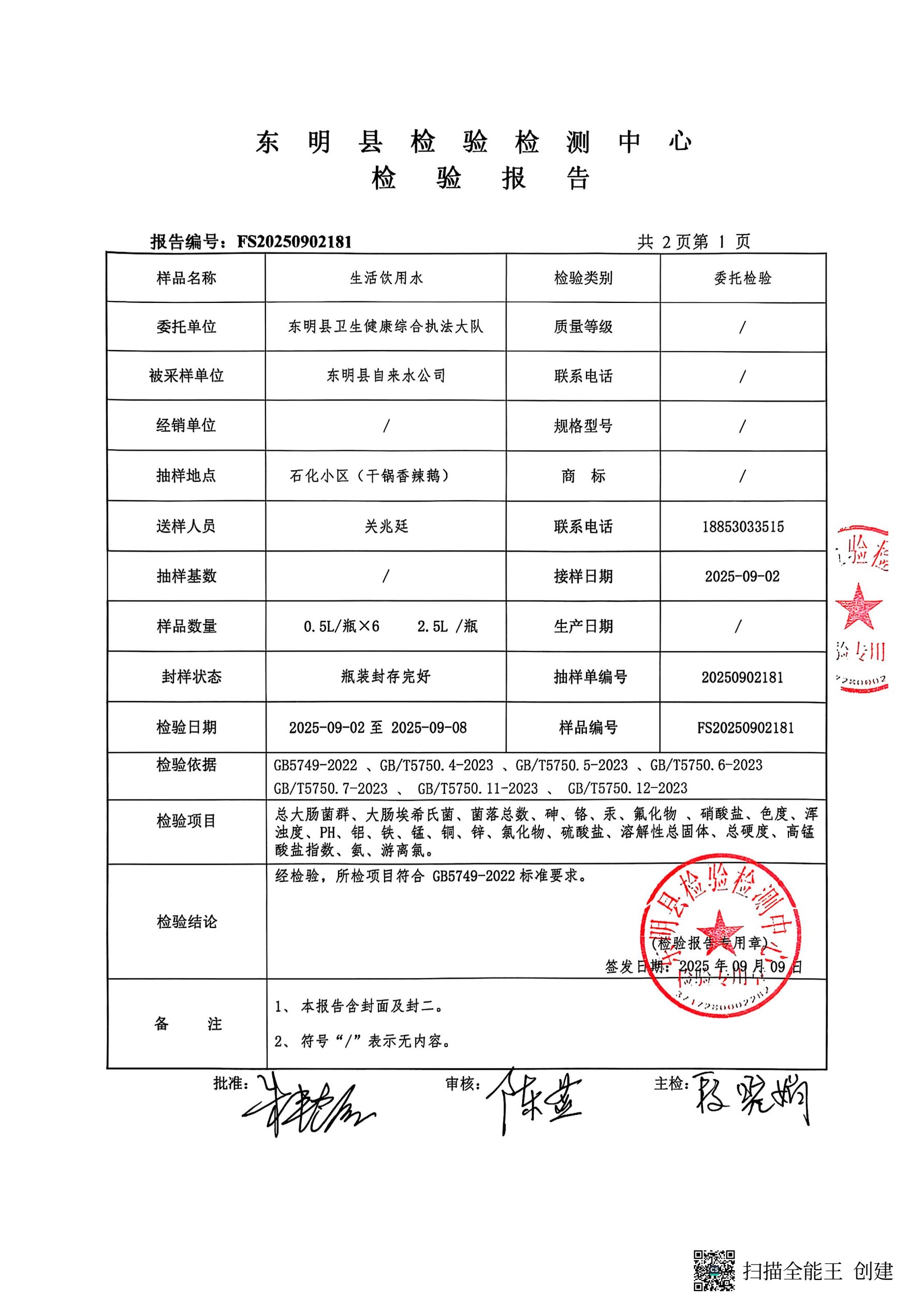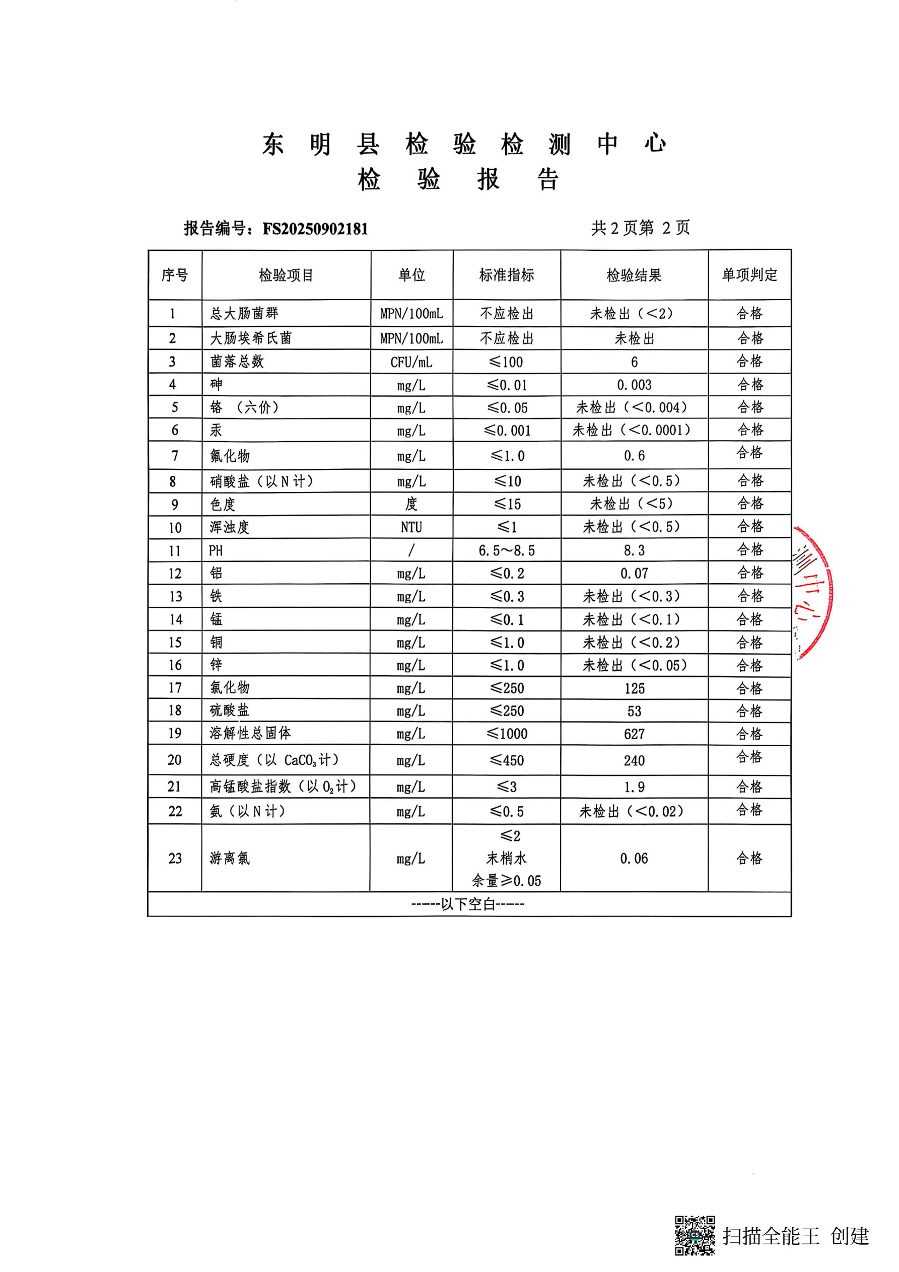 2025年第三季度管网末梢水检测石化小区干锅香辣鸡取水口(季检)