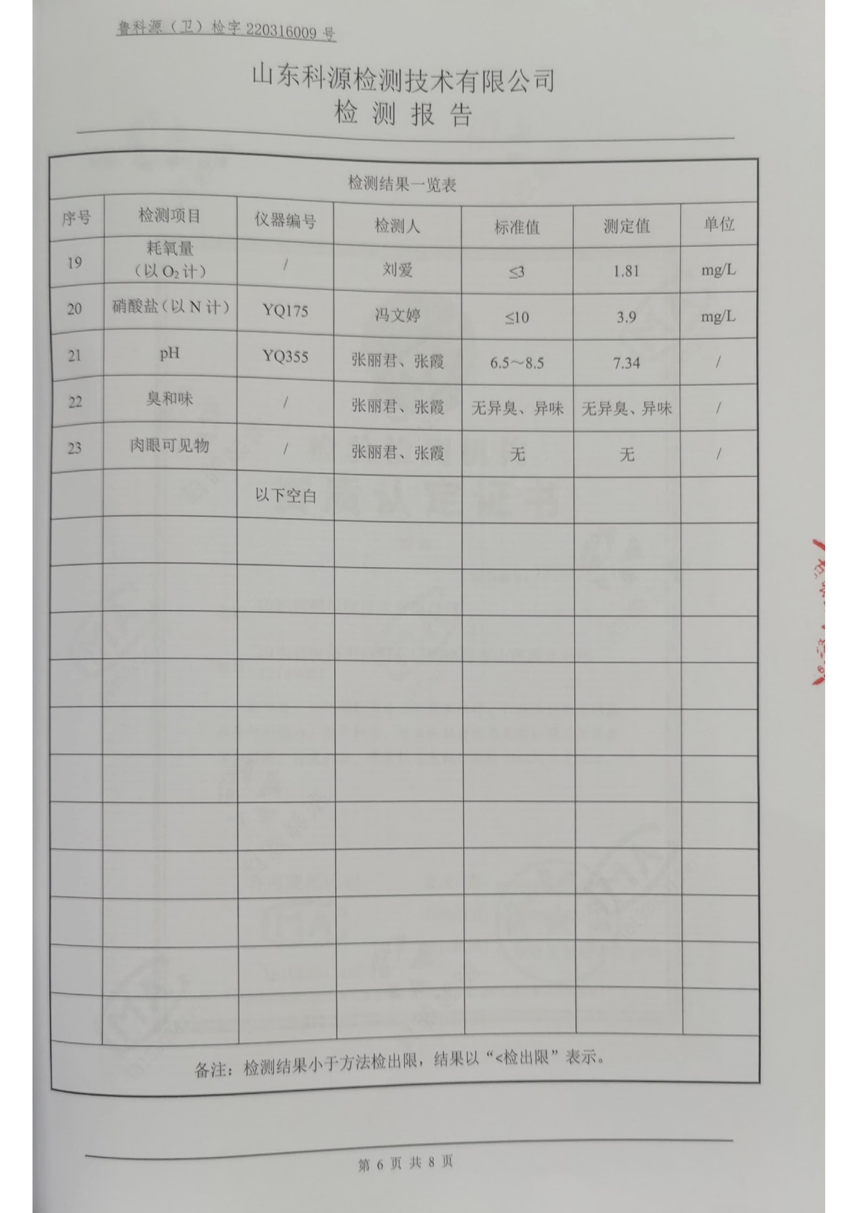 2022年第一季度水质检测报告水岸鑫城商铺取水口