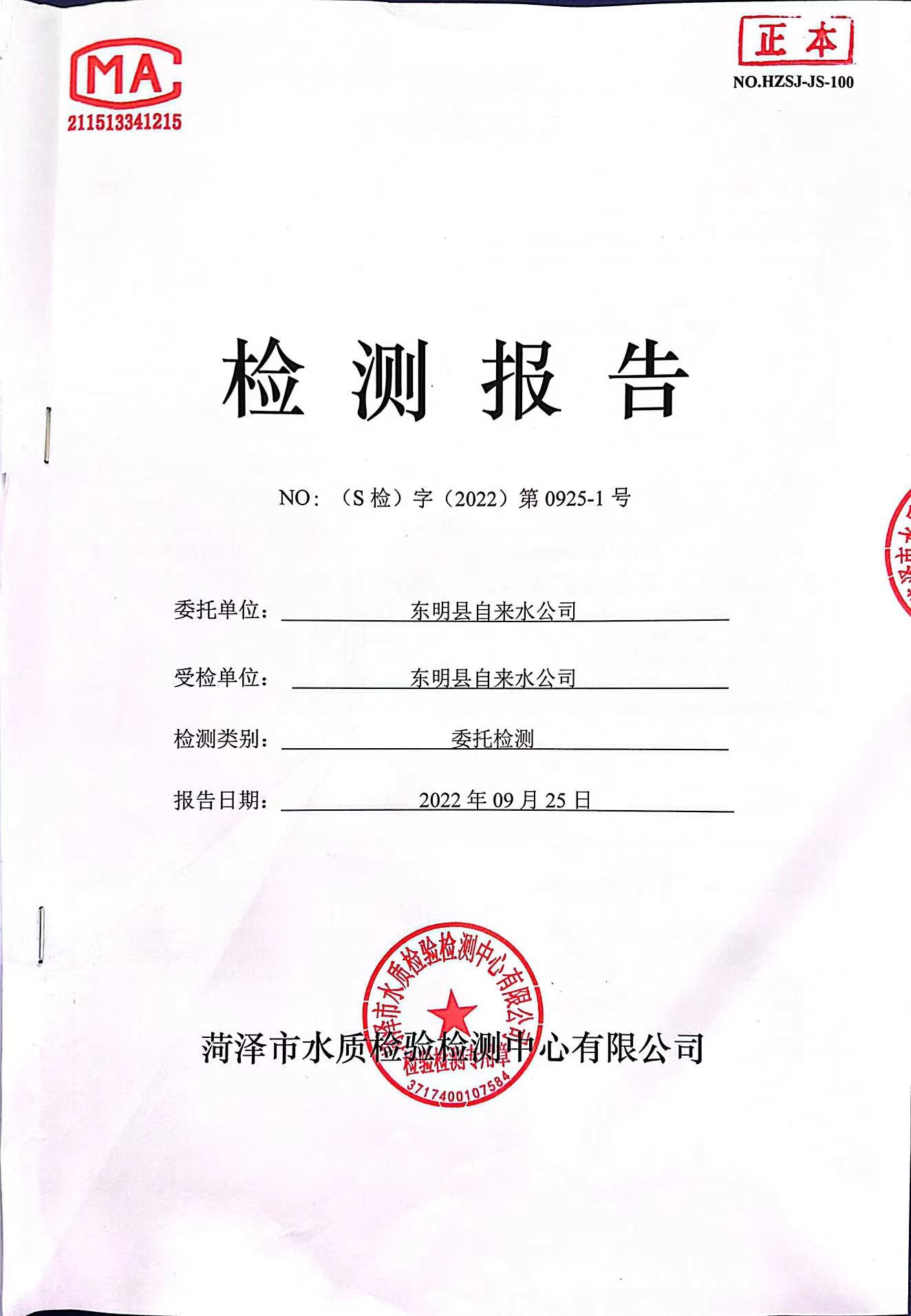 2022年9月水质检测报告(月检)