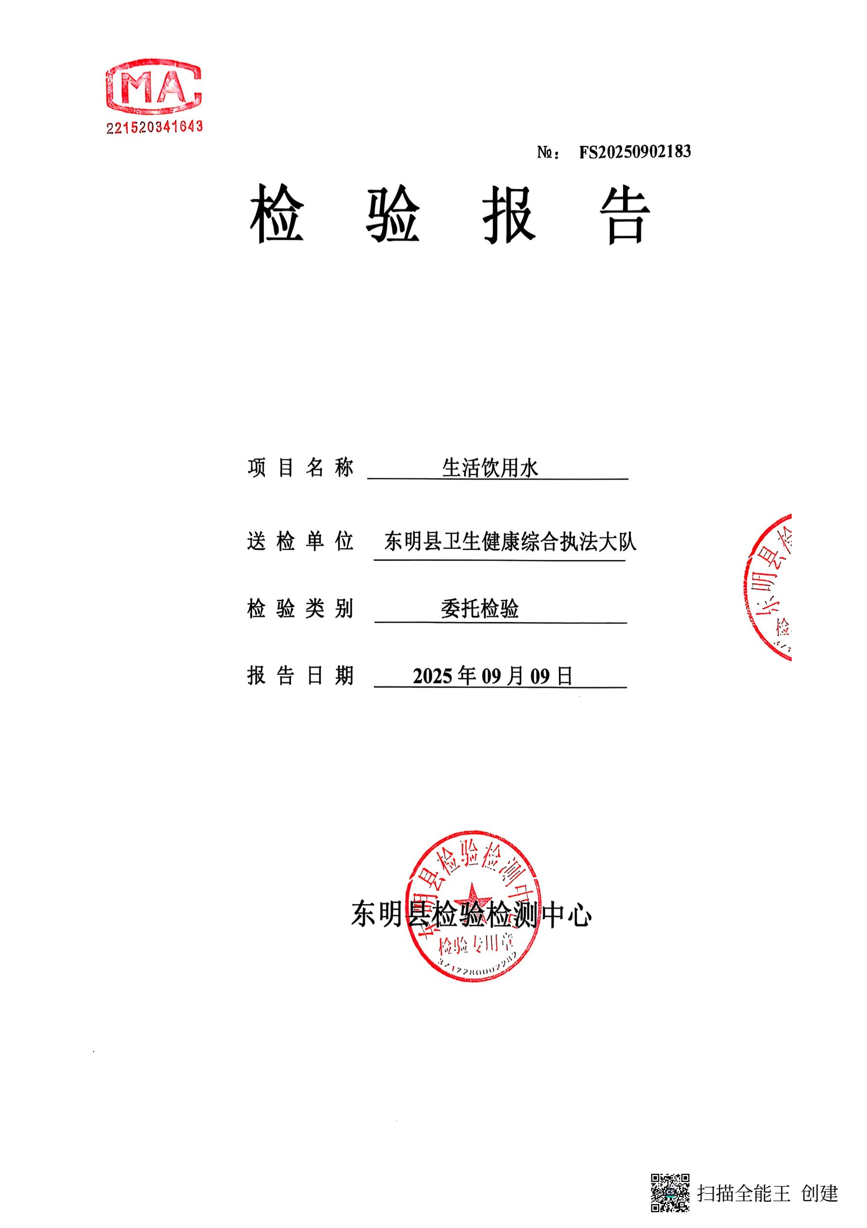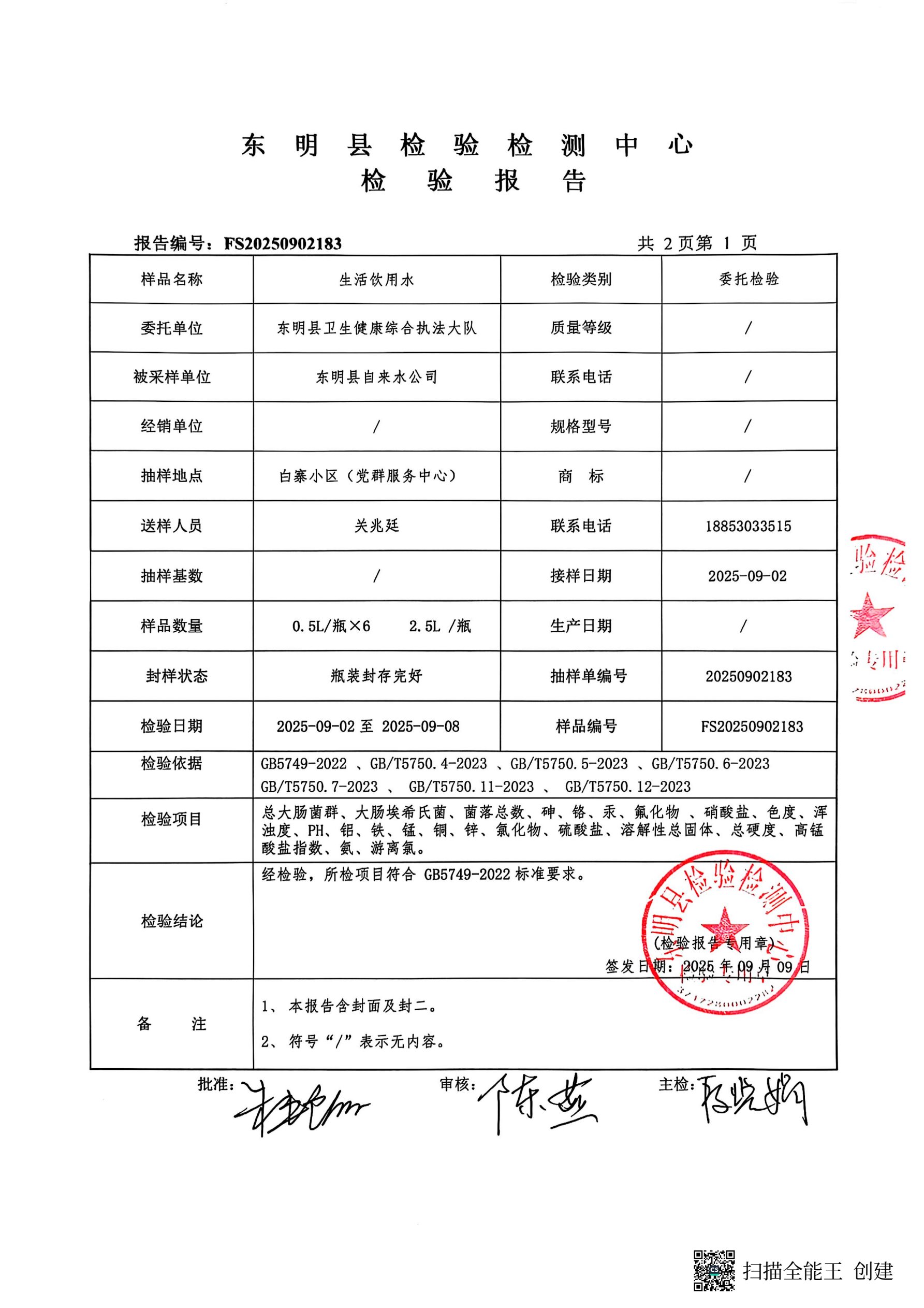 2025年第三季度管网末梢水检测白寨小区党群服务中心取水口(季检)