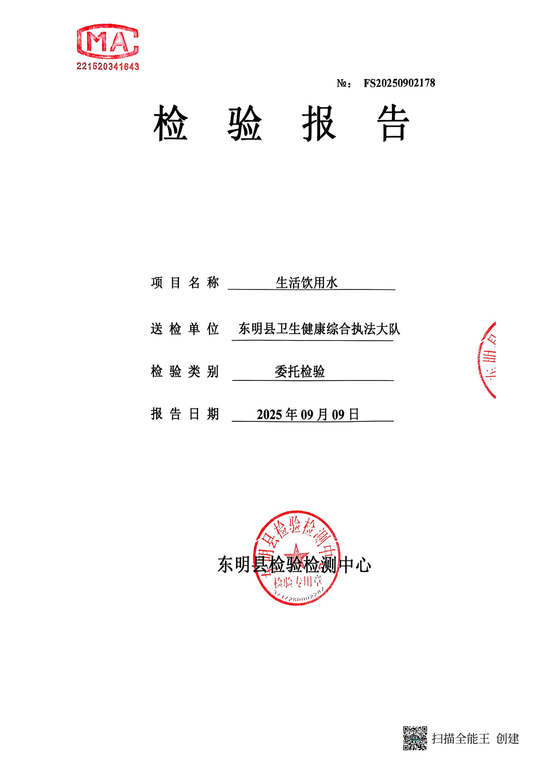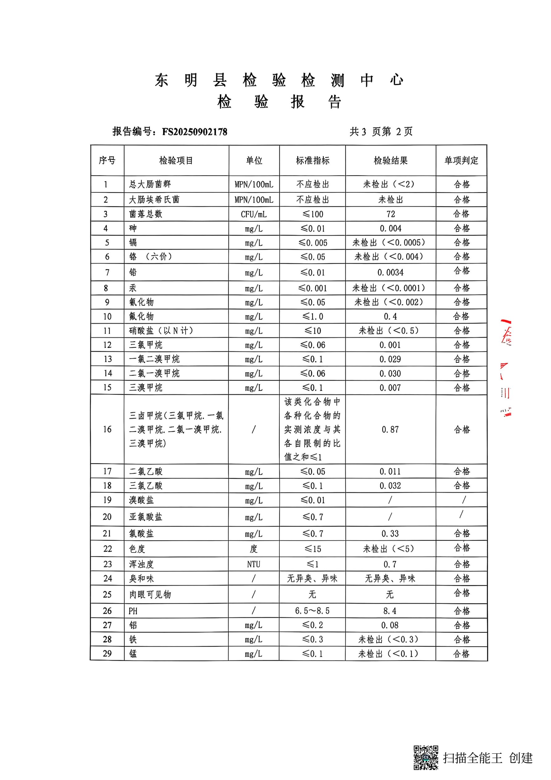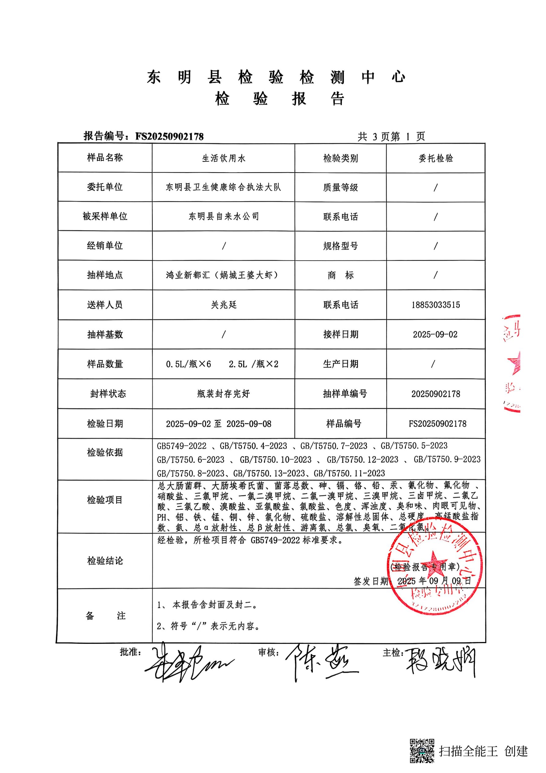 2025年第三季度管网末梢水检测鸿业新都会王婆大虾取水口(季检)