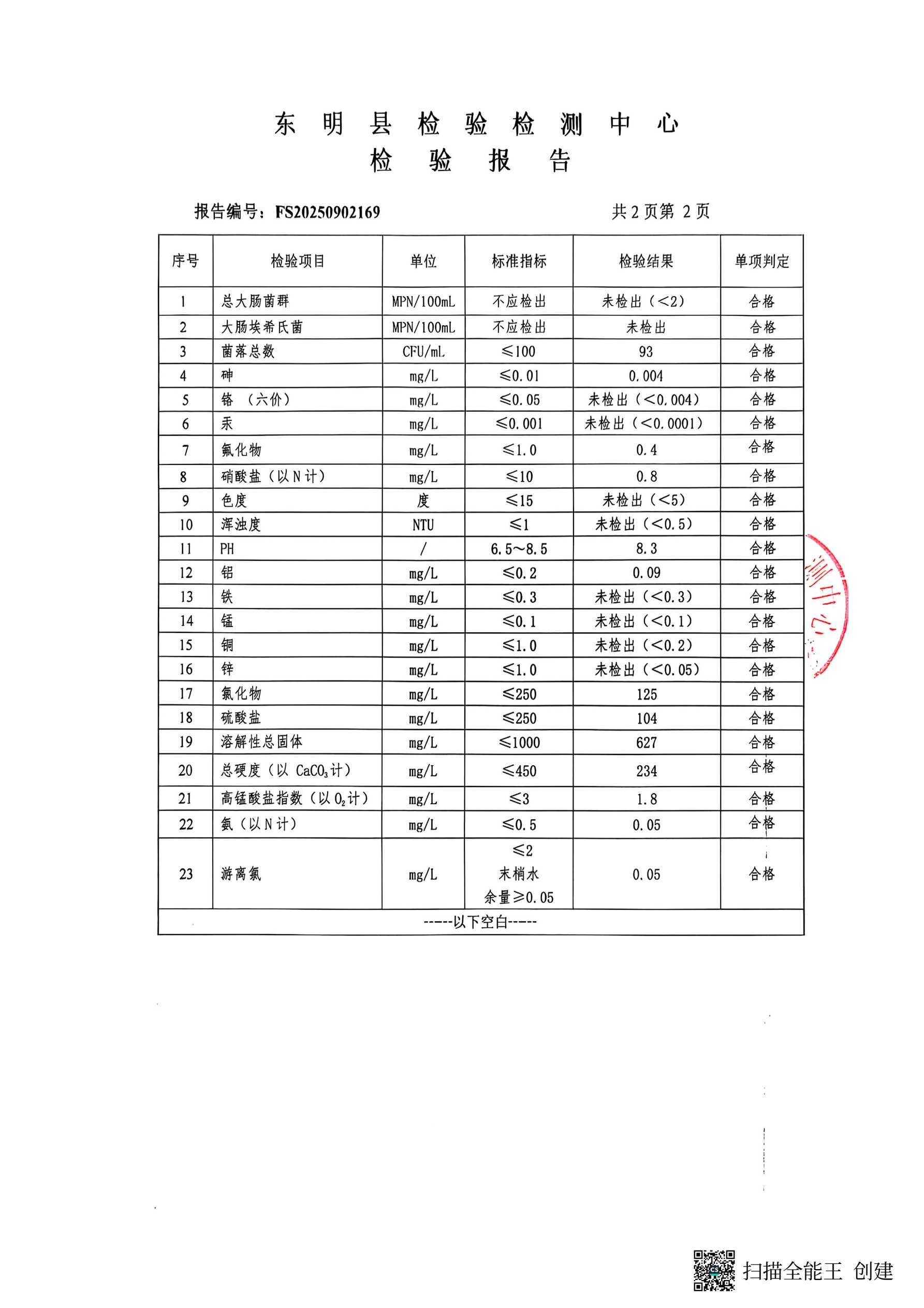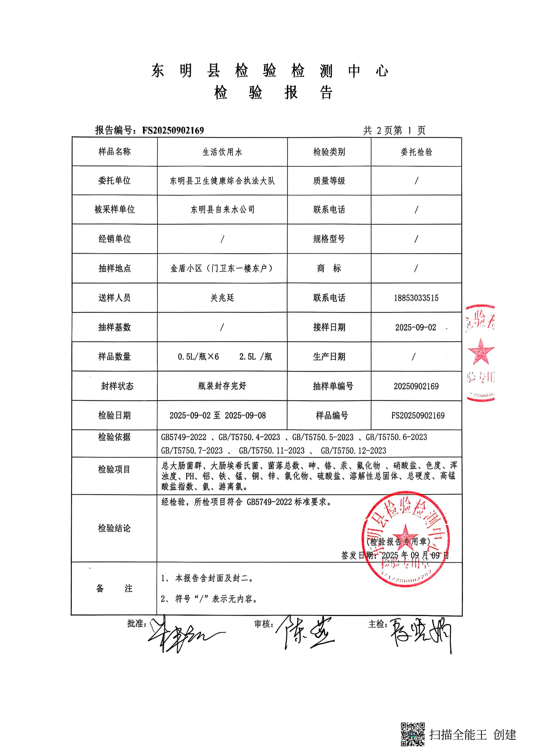 2025年第三季度管网末梢水检测金盾小区取水口(季检)