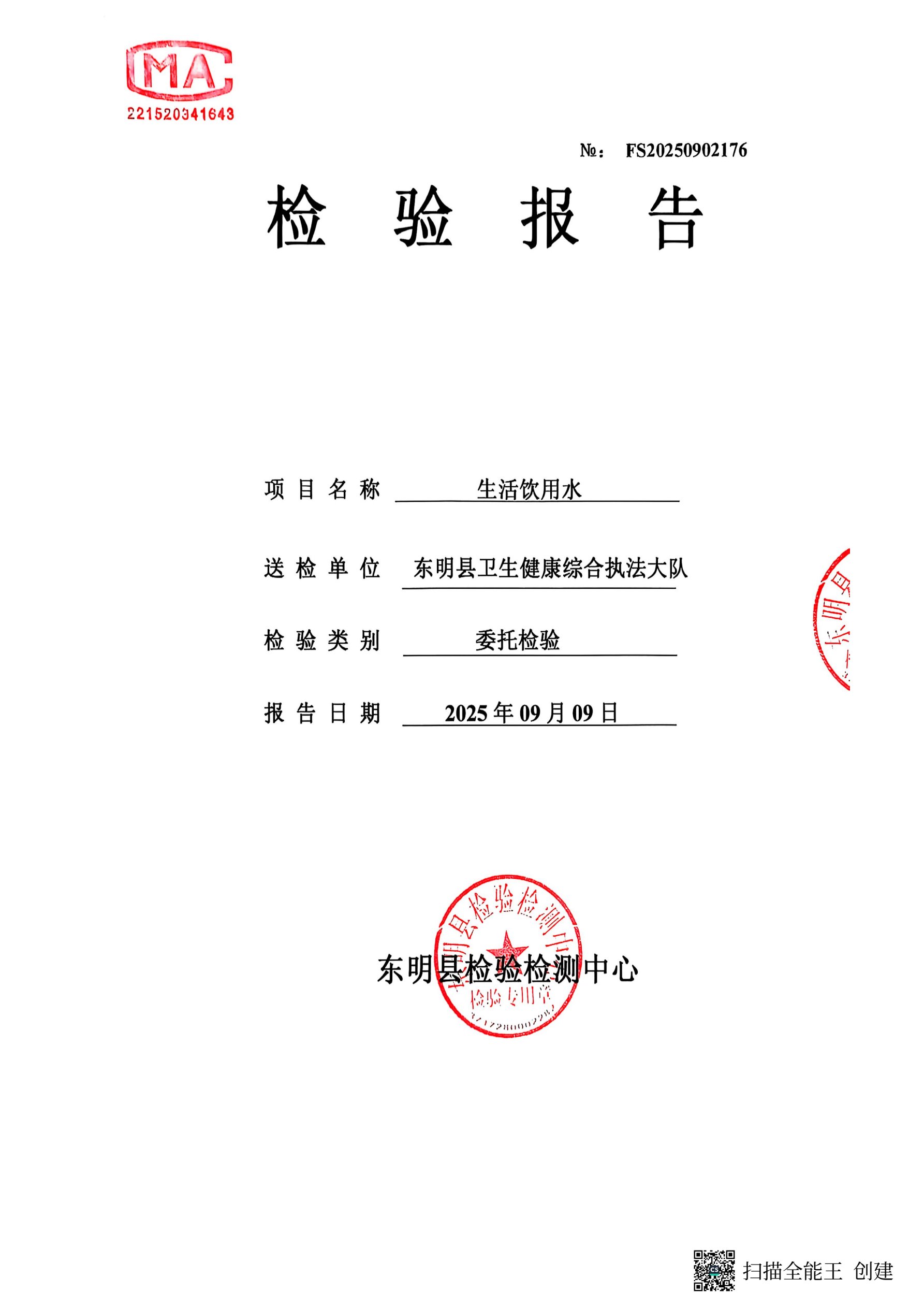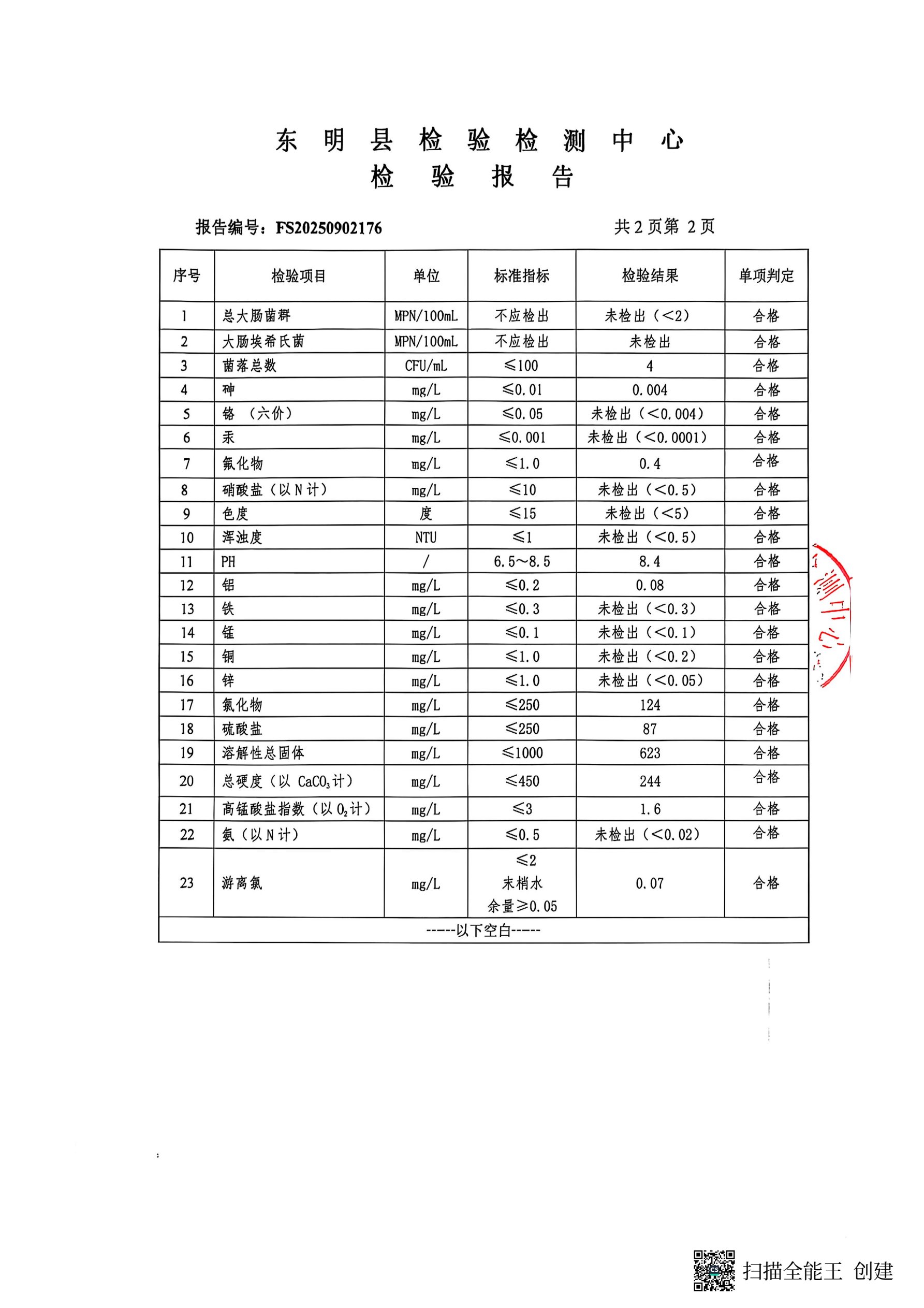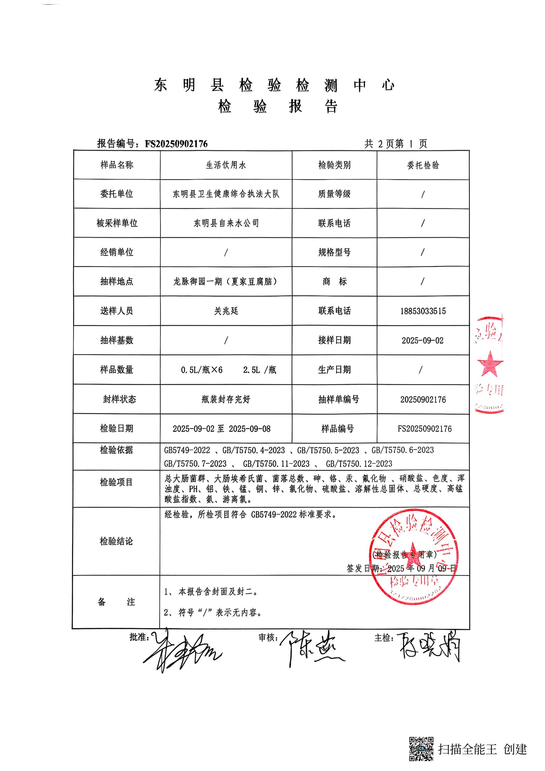 2025年第三季度管网末梢水检测龙脉御园一期夏家豆腐脑取水口(季检)