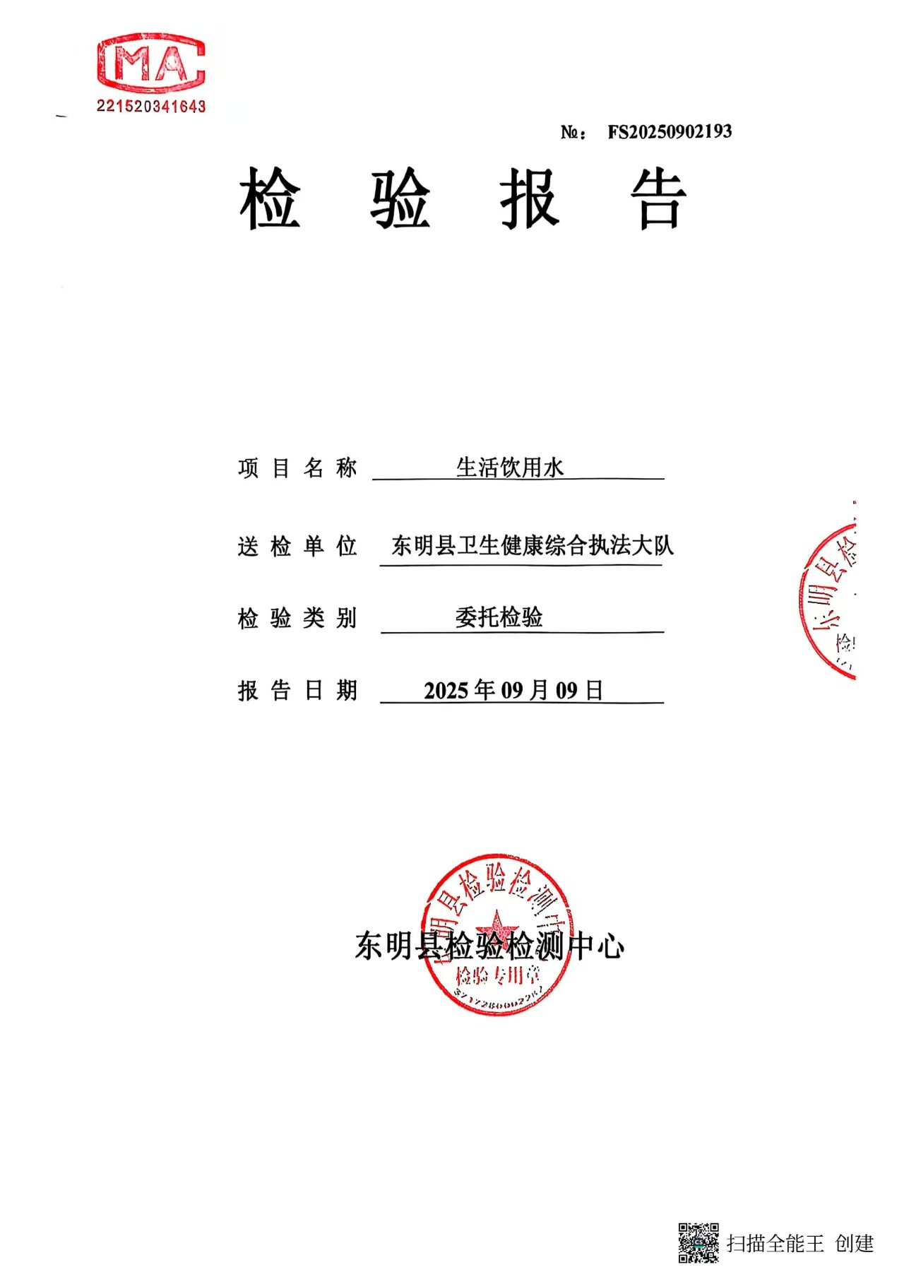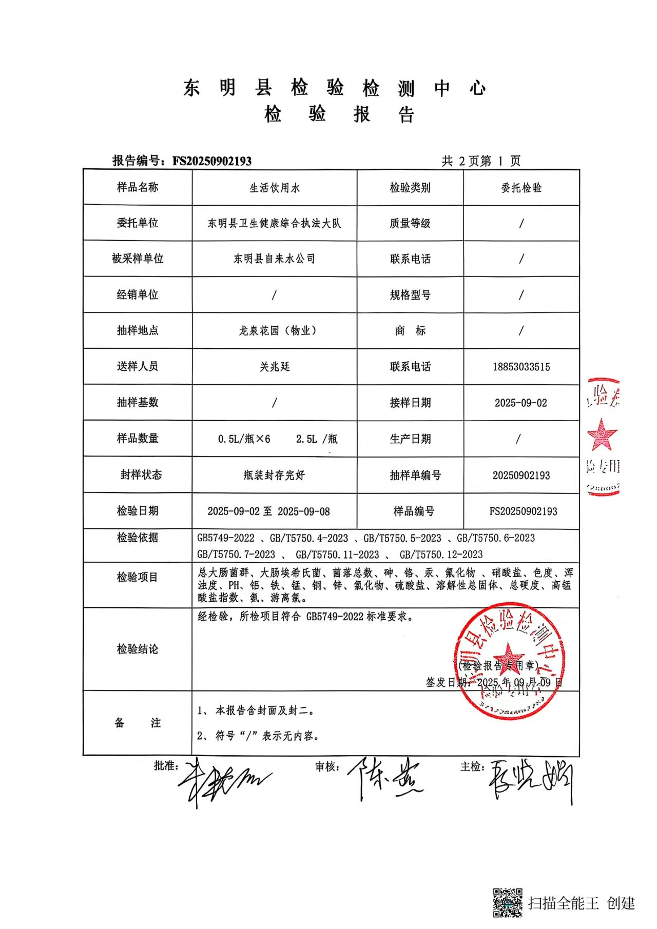 2025年第三季度管网末梢水检测龙泉花园物业取水口(季检)