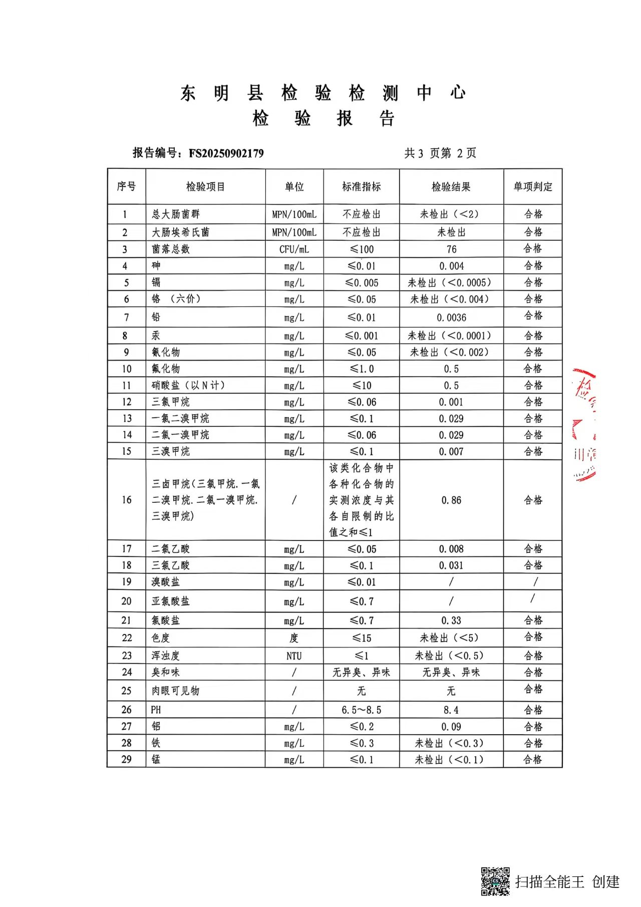2025年第三季度管网末梢水检测明祥福苑大米把子肉取水口(季检)