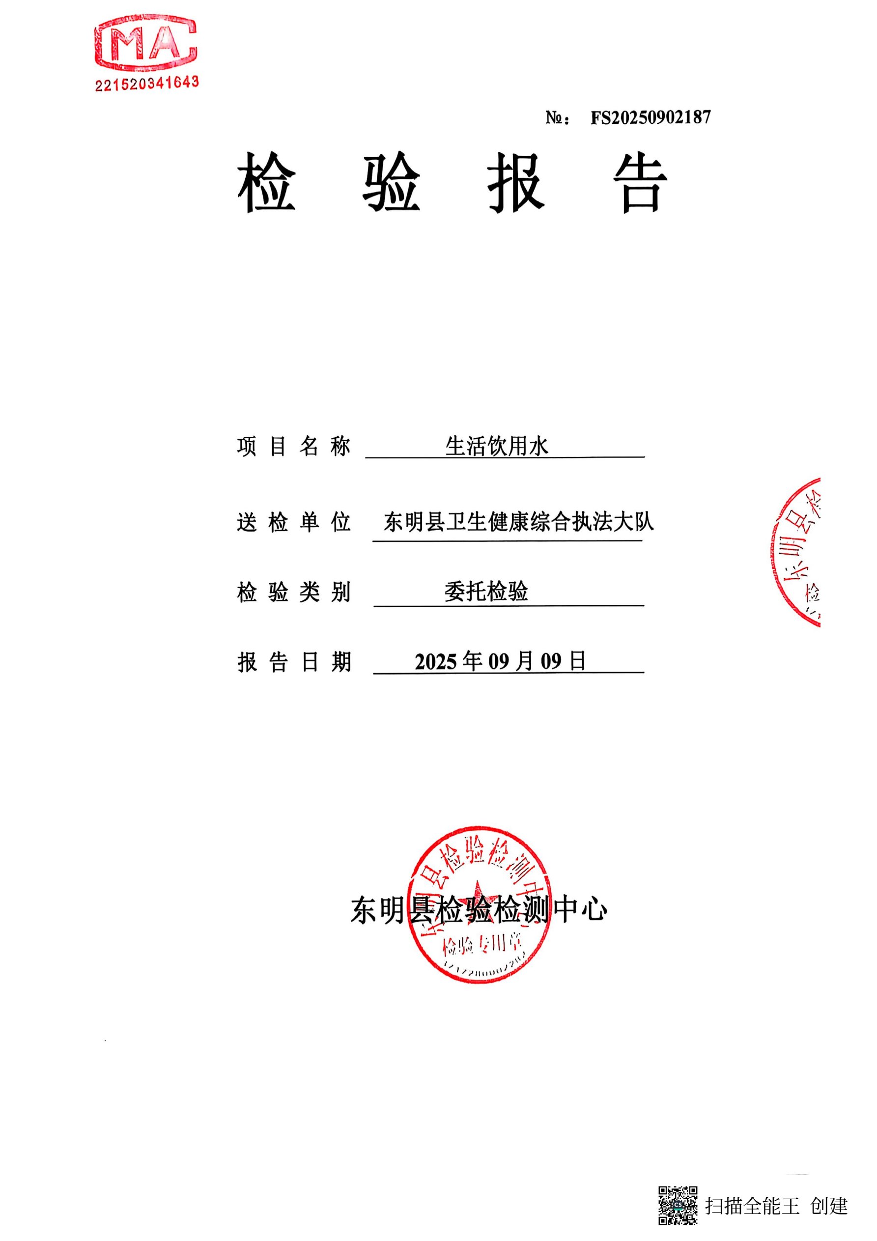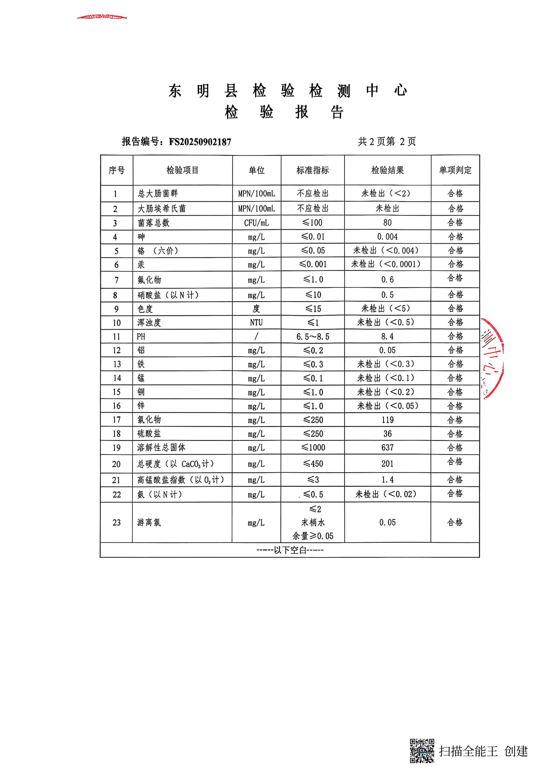 2025年第三季度管网末梢水检测上海城物业取水口(季检)