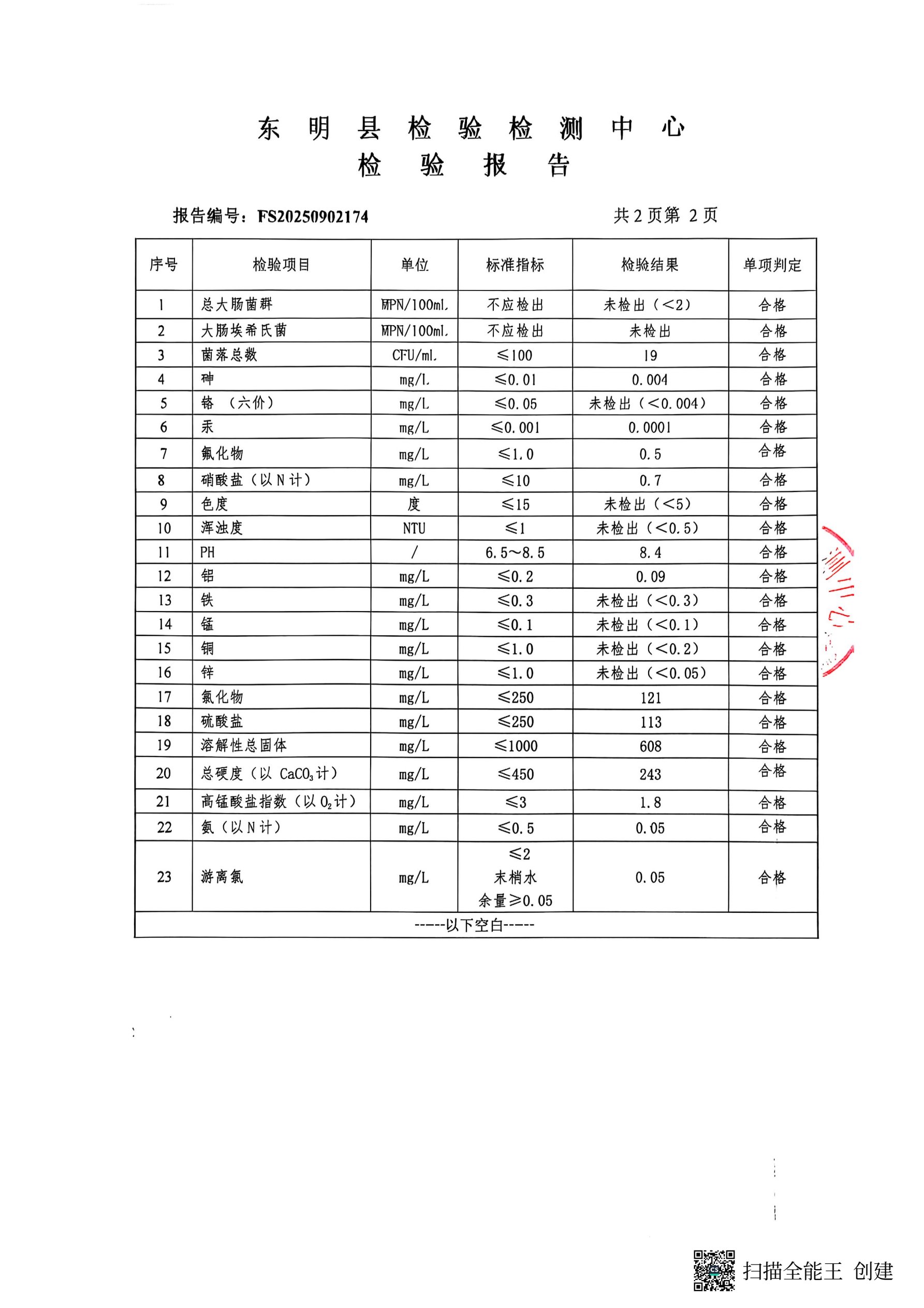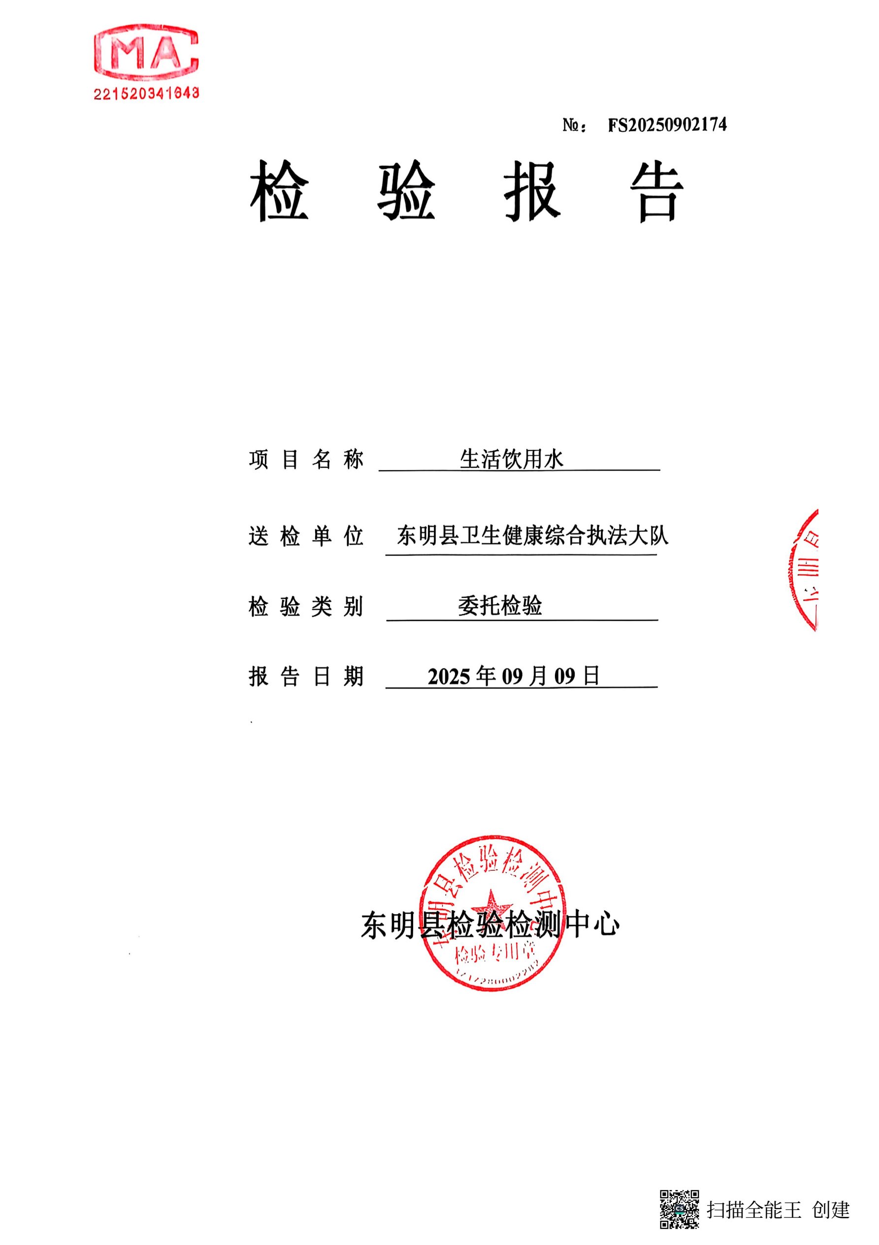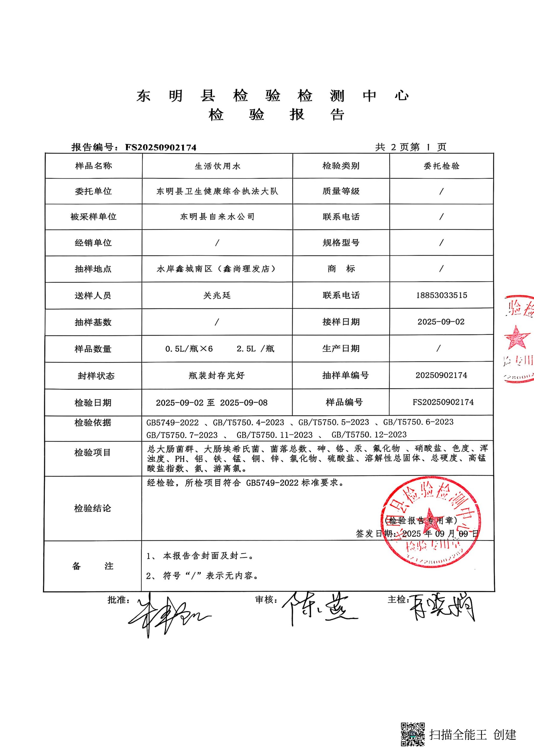 2025年第三季度管网末梢水检测水岸鑫城南区鑫尚理发店取水口(季检)