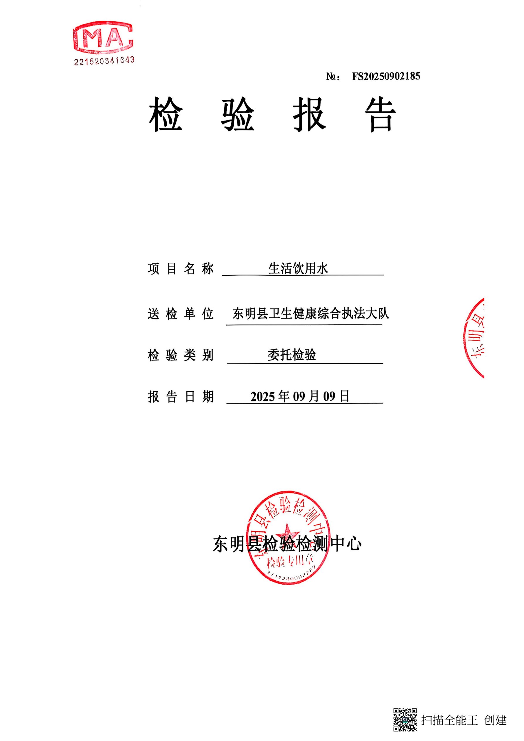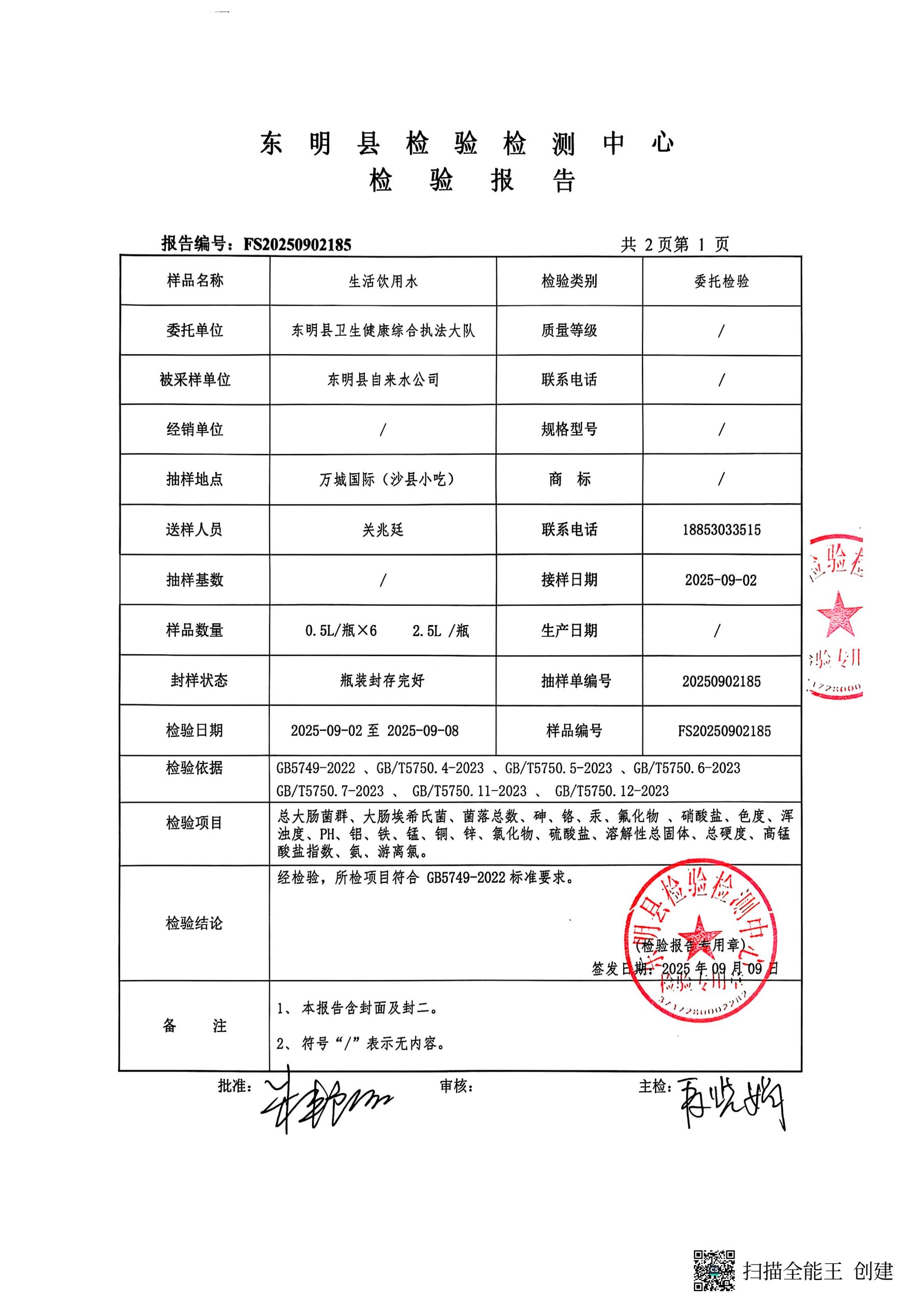 2025年第三季度管网末梢水检测万城国际沙县小吃取水口(季检)