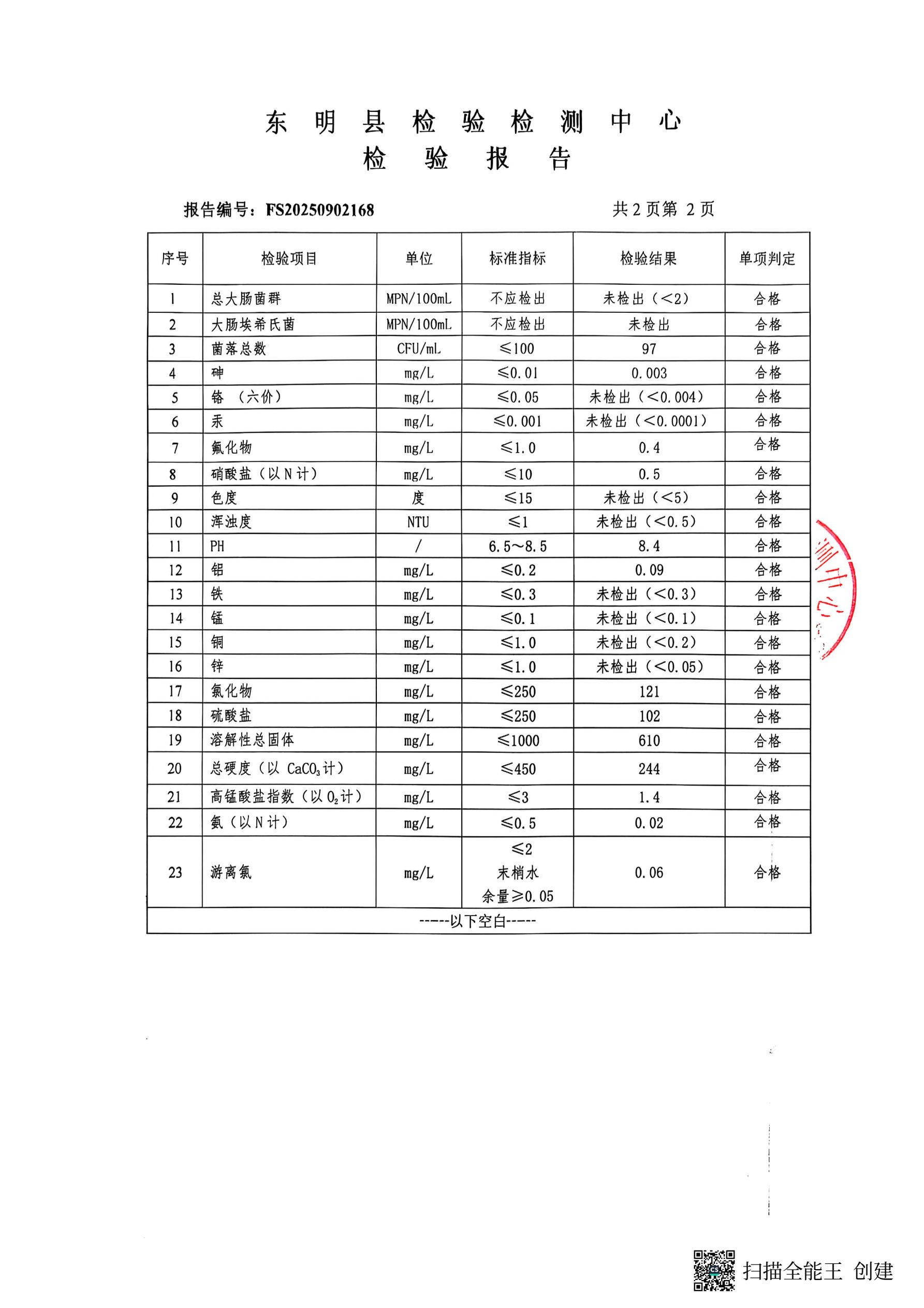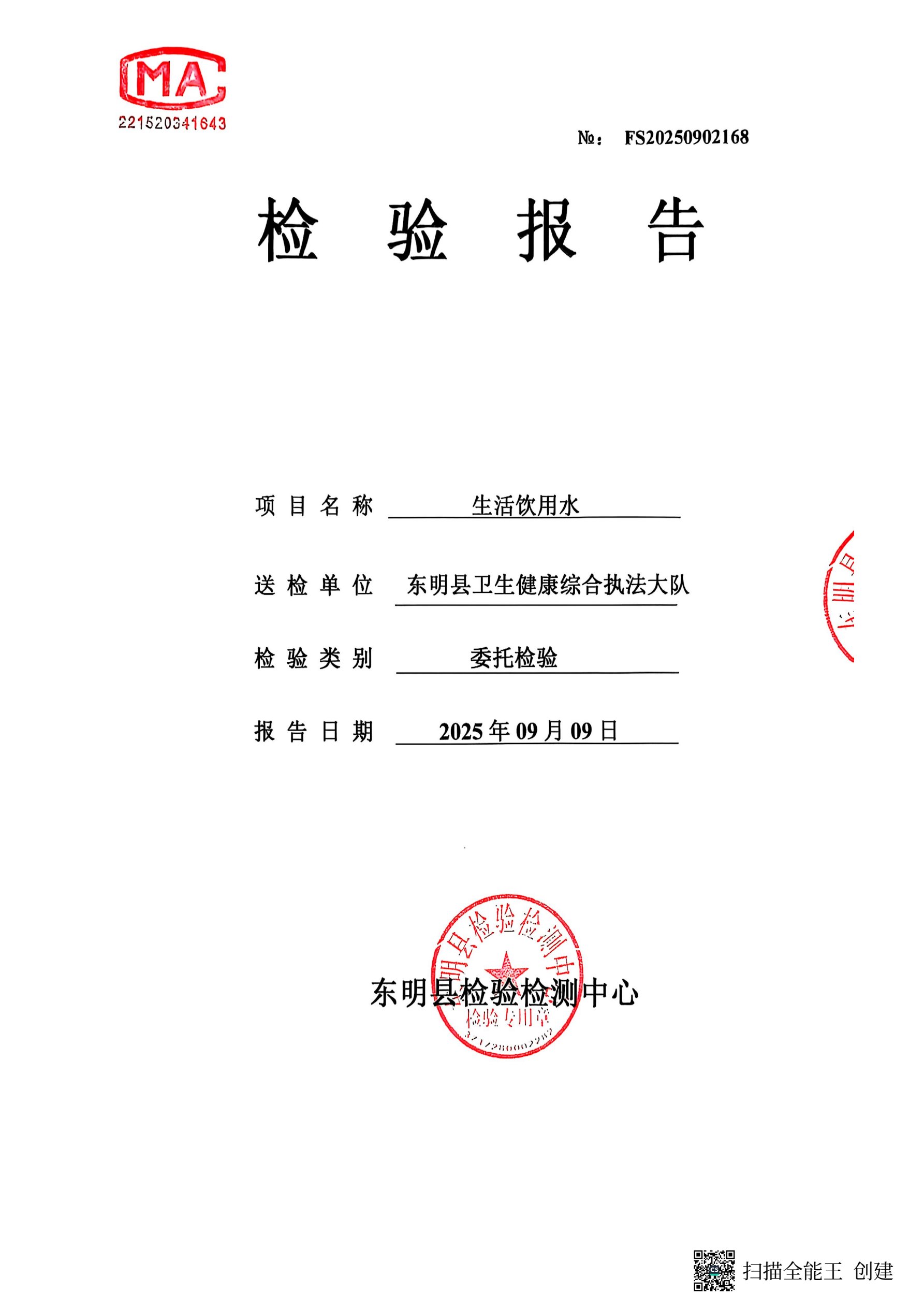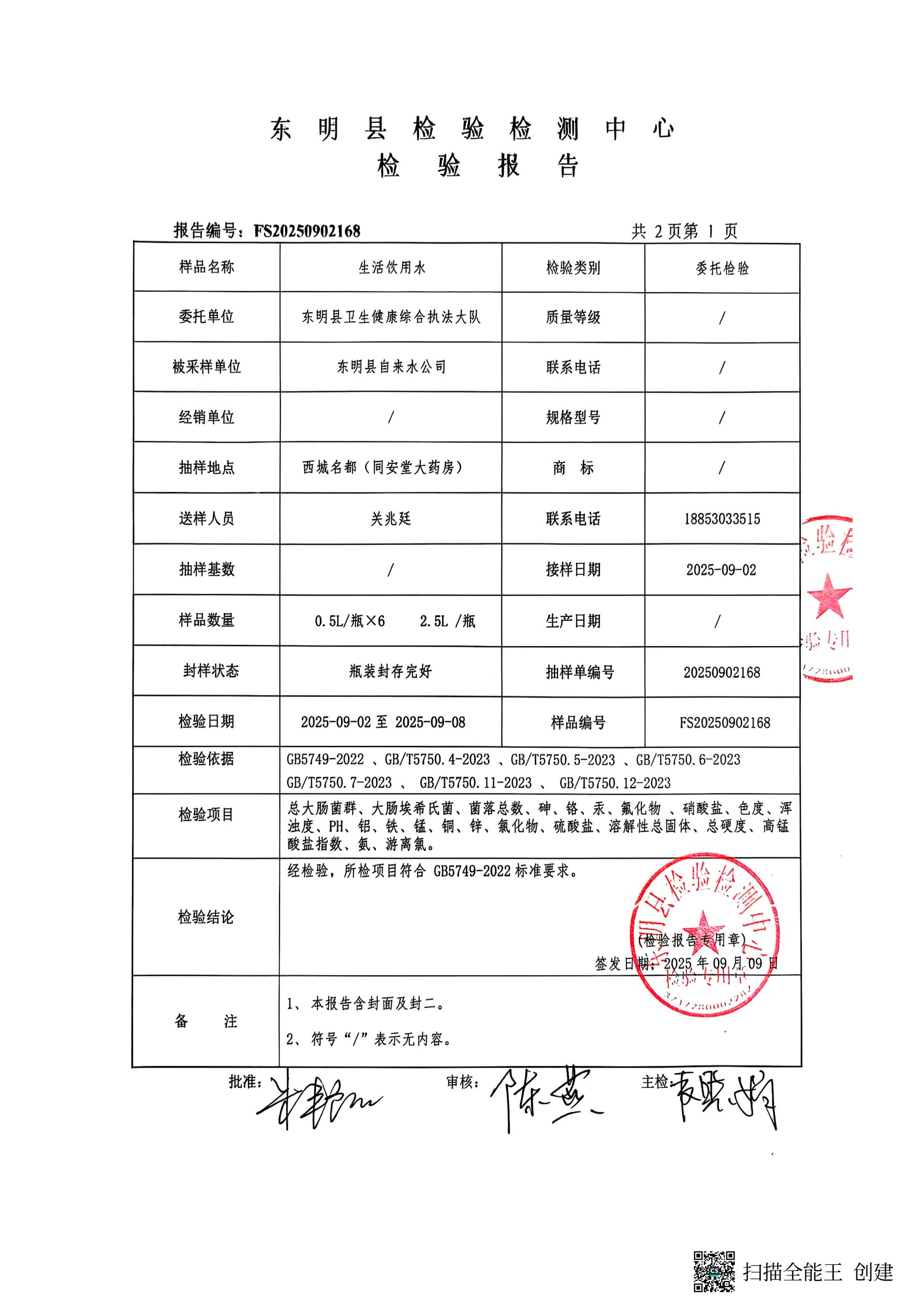 2025年第三季度管网末梢水检测西城名都同安堂大药房取水口(季检)