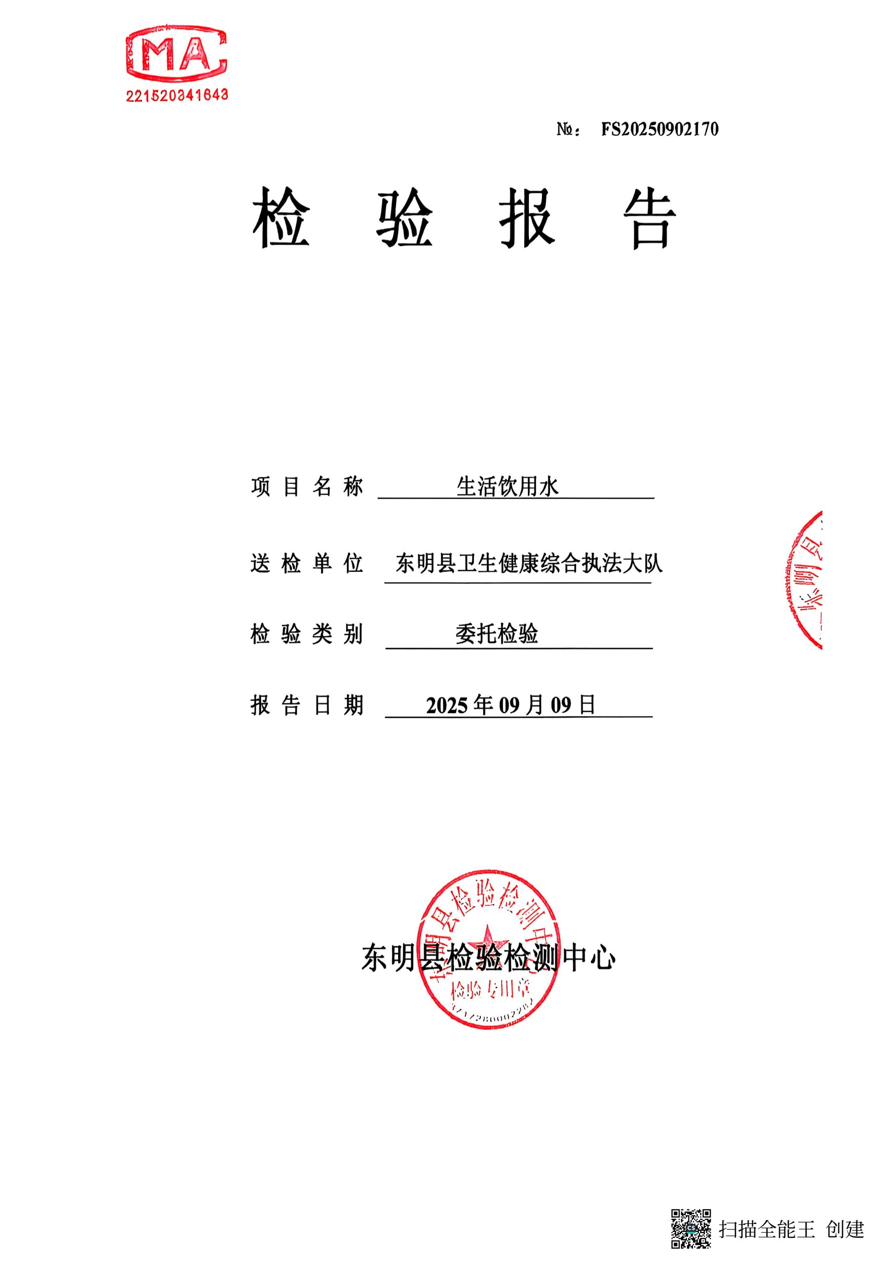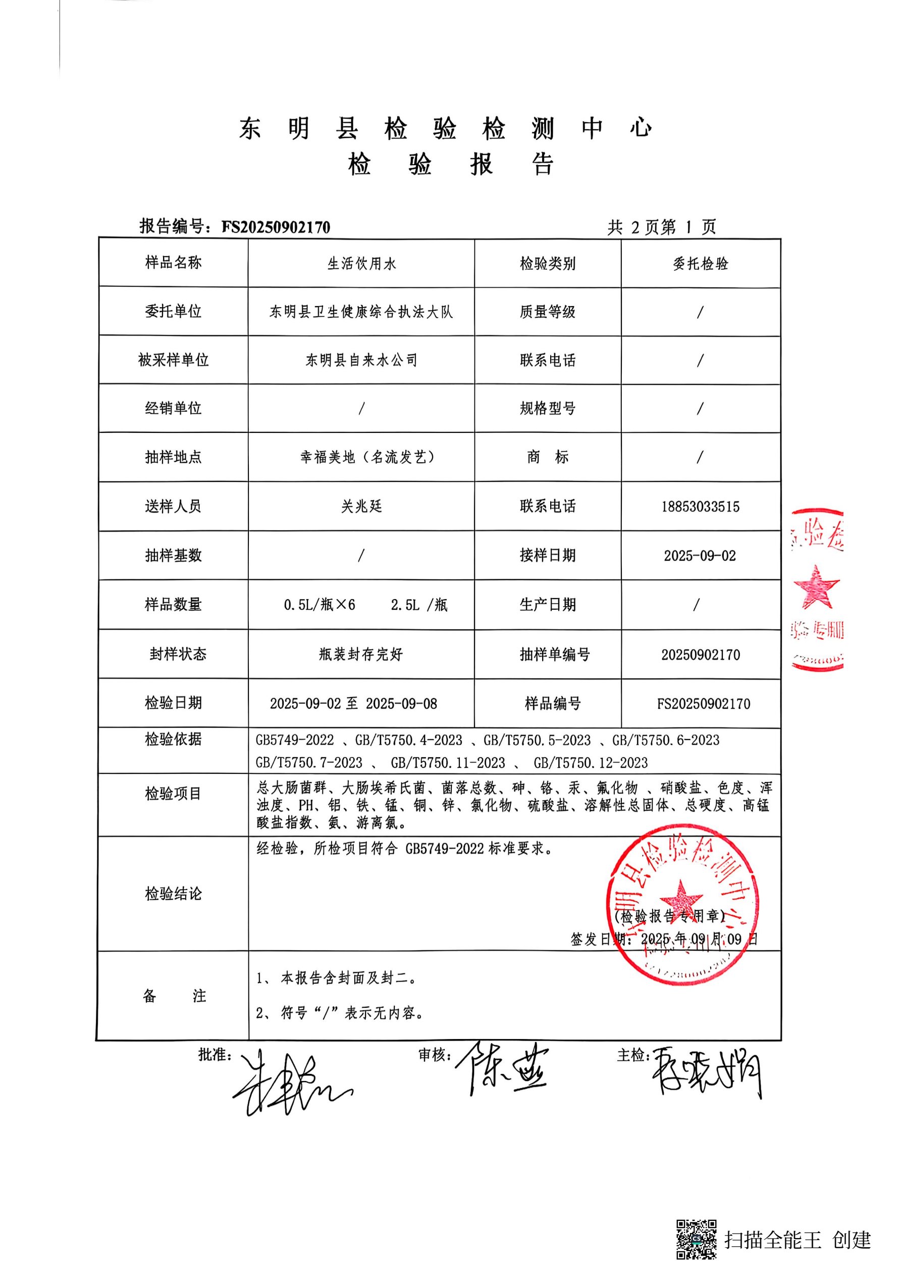 2025年第三季度管网末梢水检测幸福美地名流发艺取水口(季检)