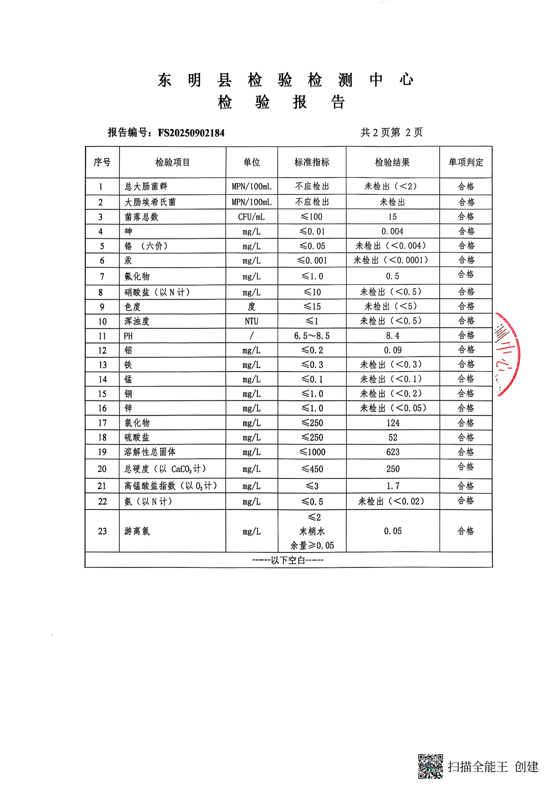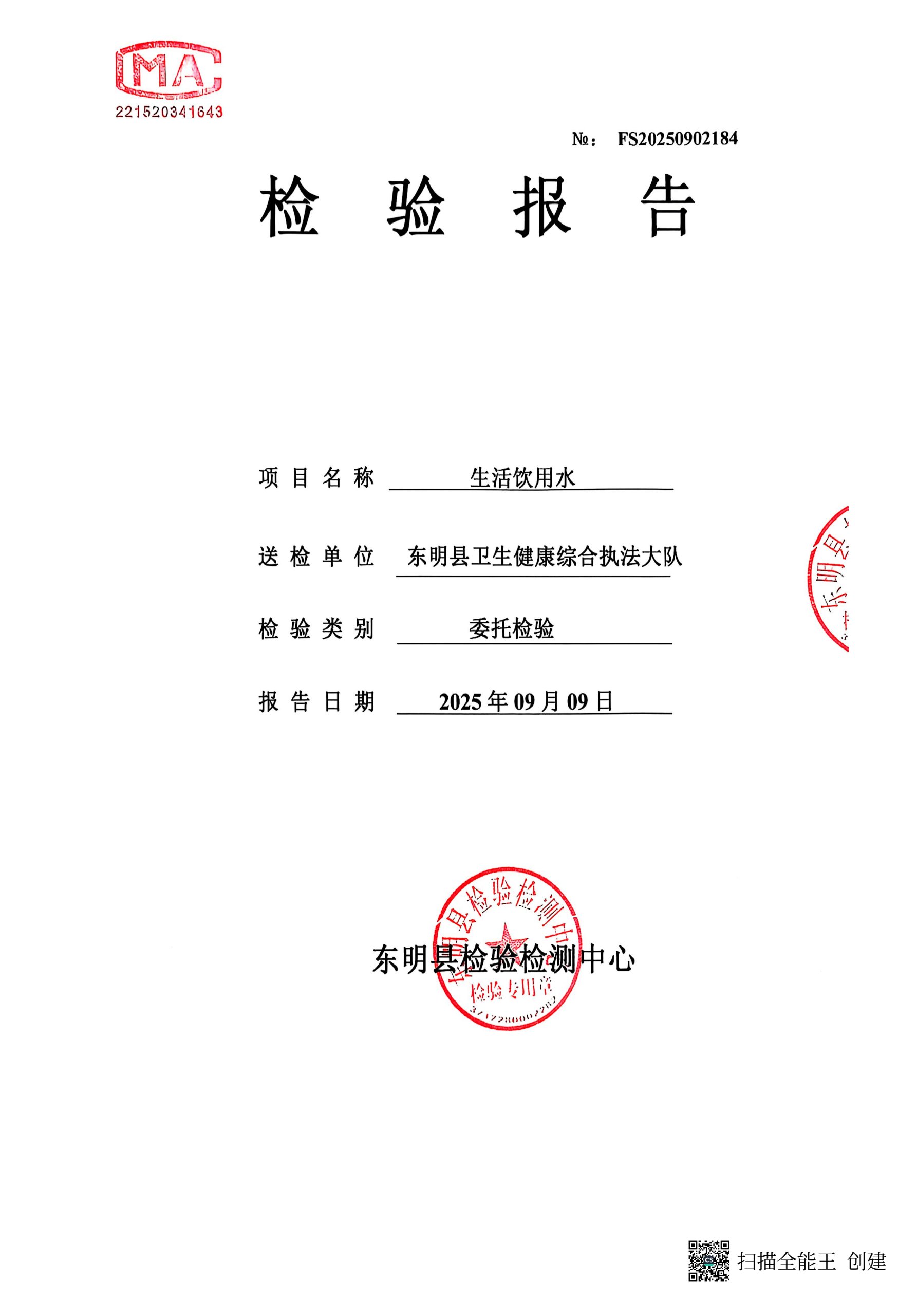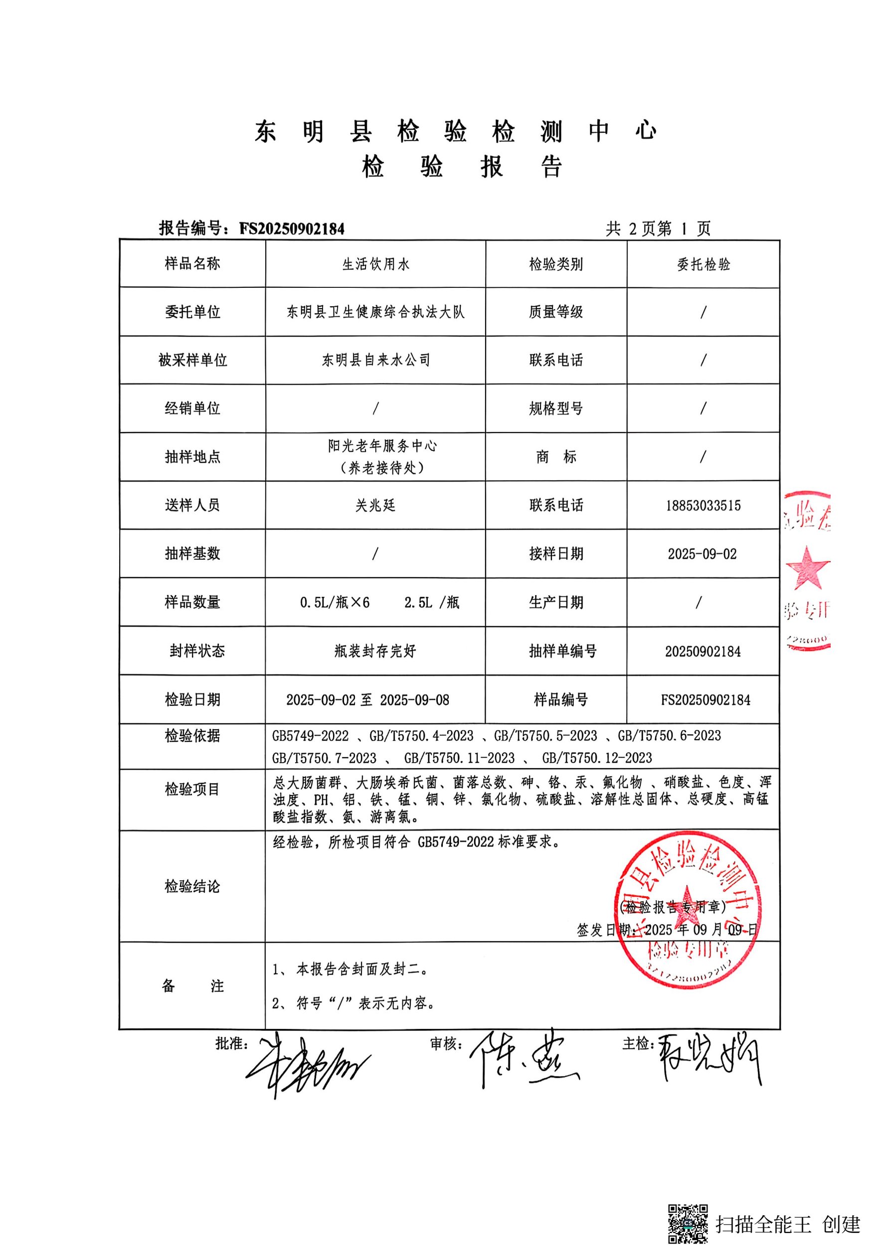 2025年第三季度管网末梢水检测阳光老年服务中心取水口(季检)