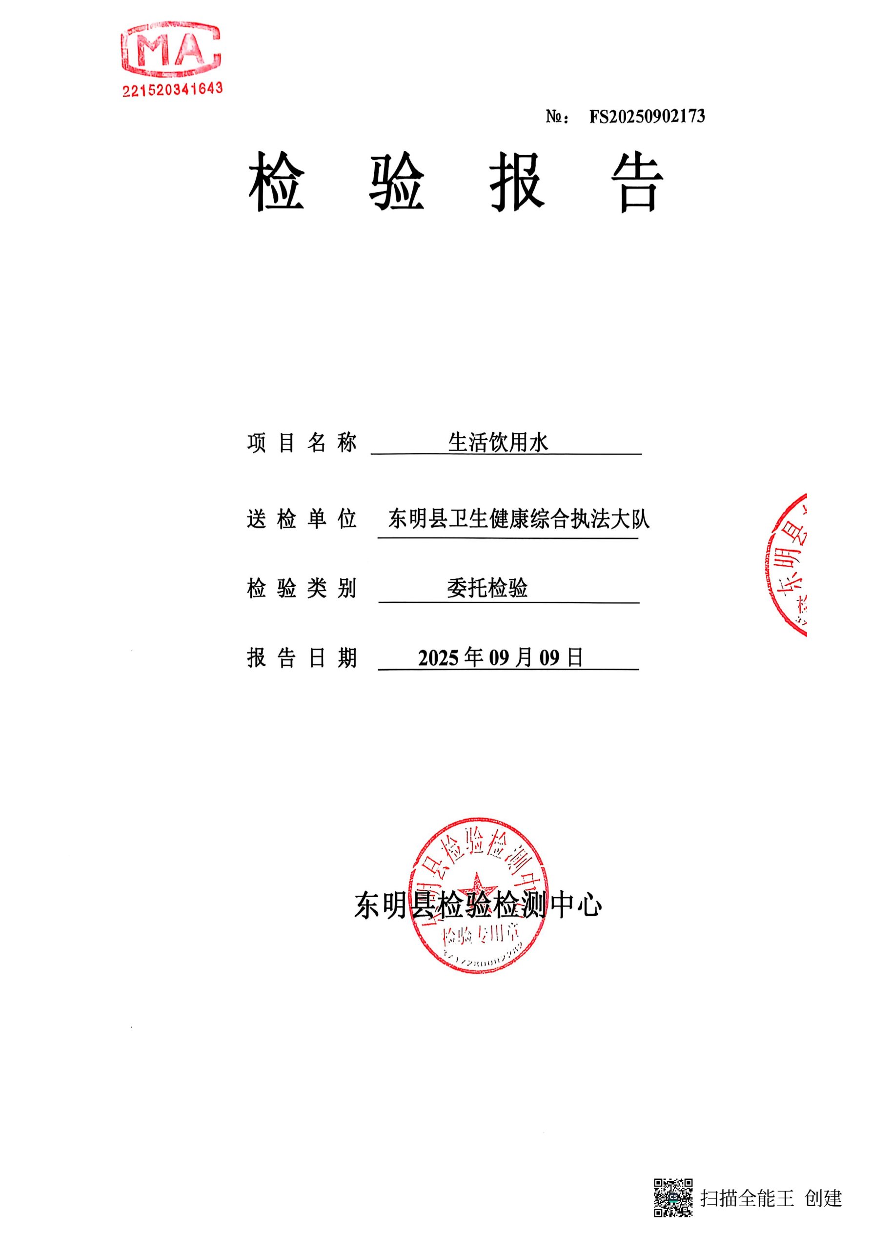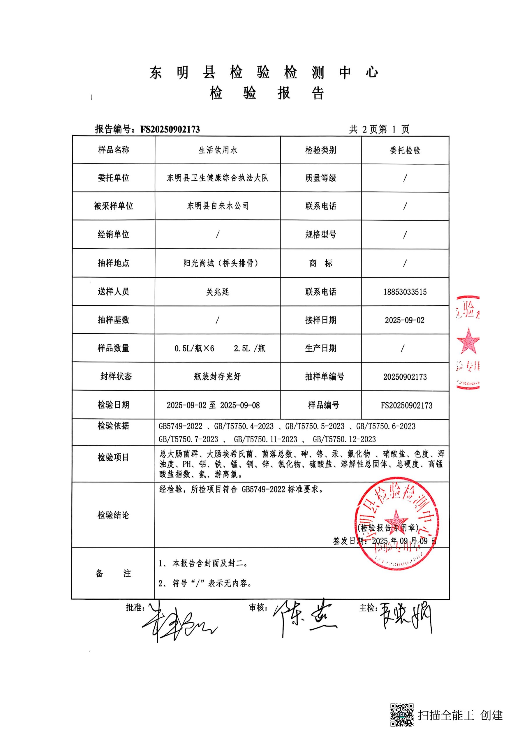 2025年第三季度管网末梢水检测阳光尚城桥头排骨取水口(季检)