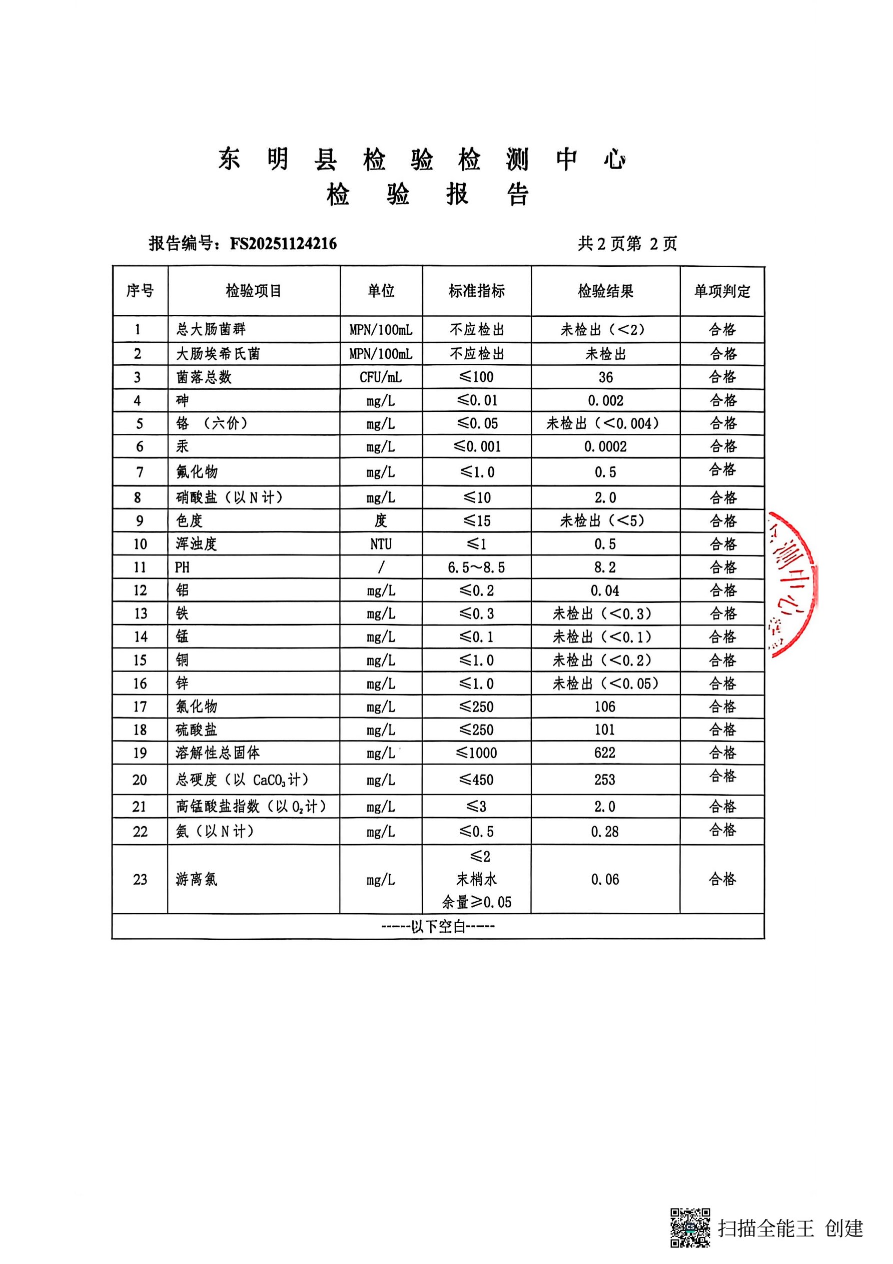 2025年第四季度管网末梢水检测城投大厦取水口(季检)