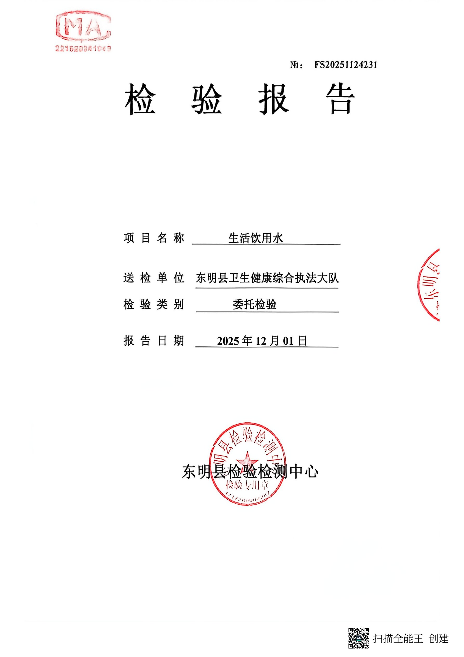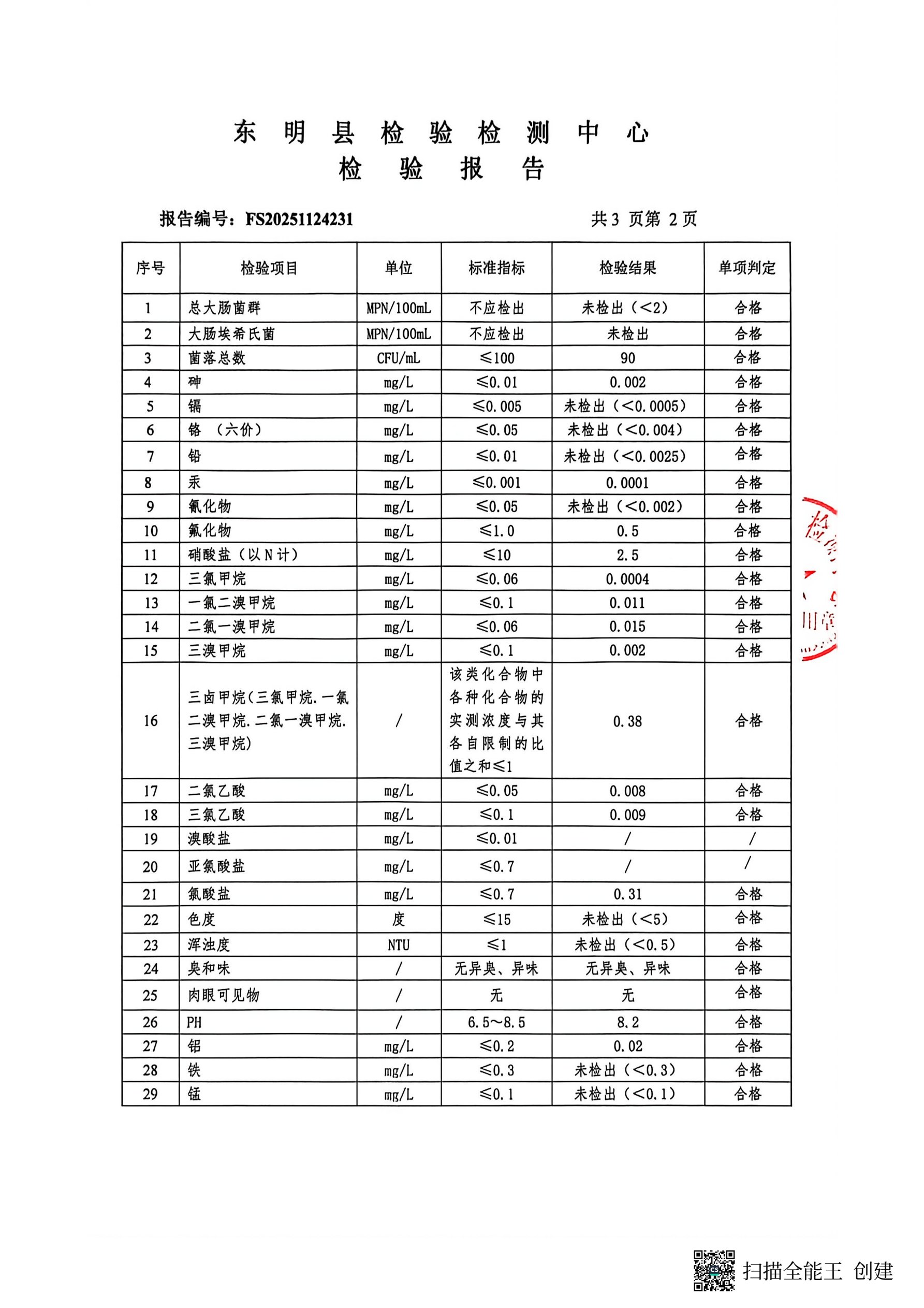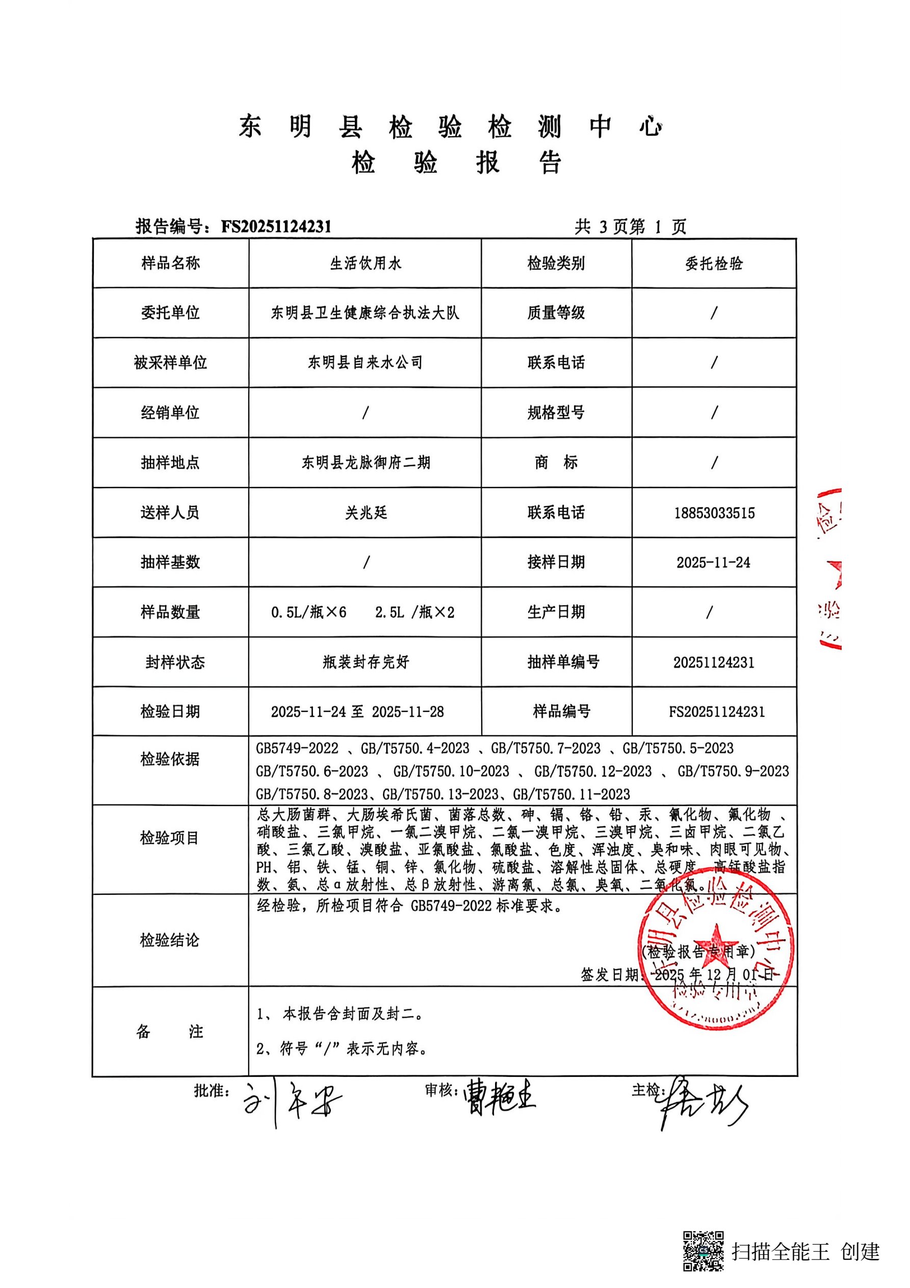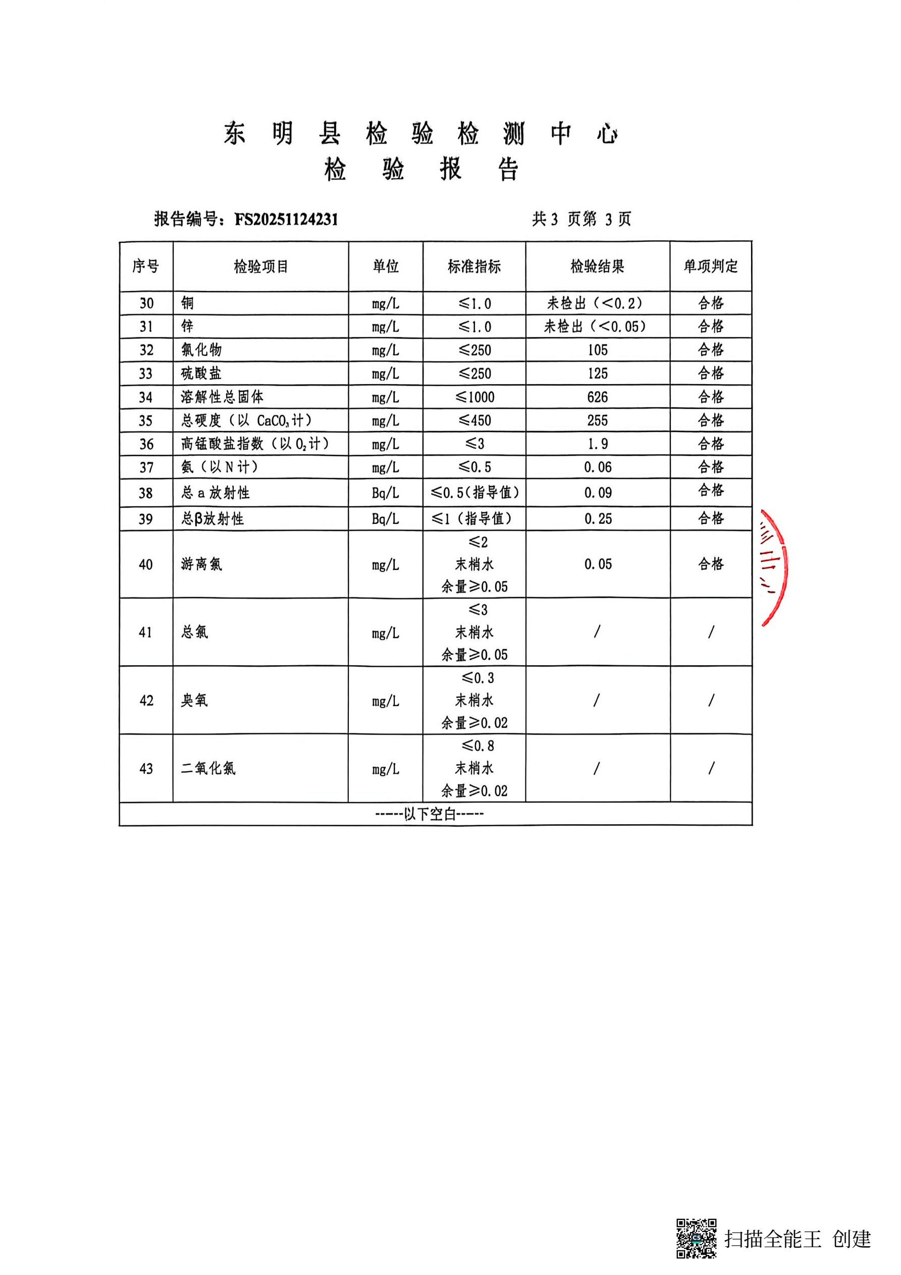 2025年第四季度管网末梢水检测龙脉御府二期取水口(季检)