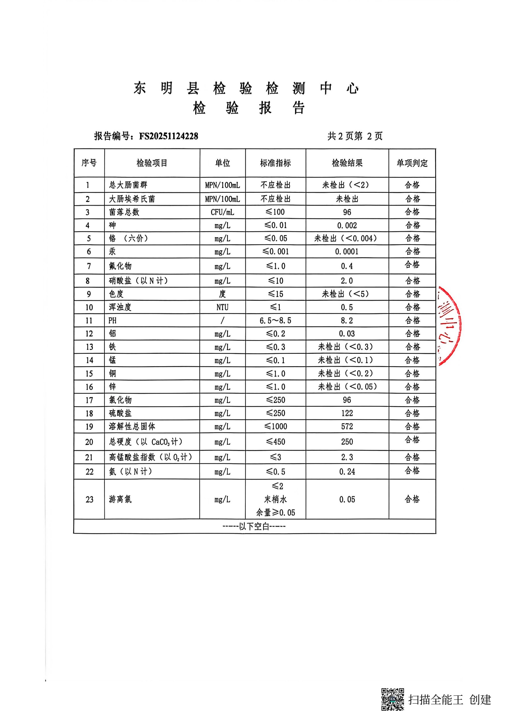 2025年第四季度管网末梢水检测名仕庄园取水口(季检)