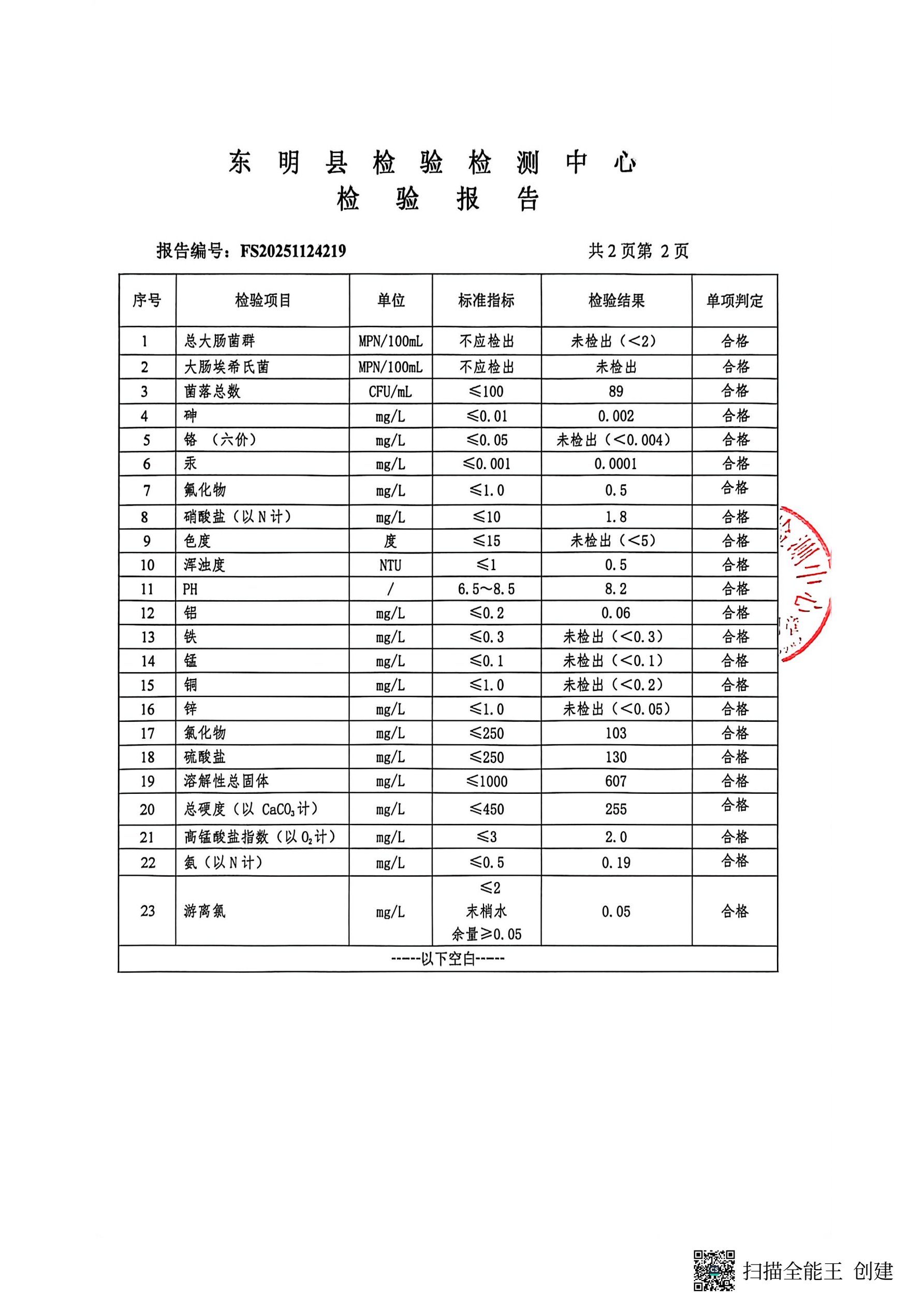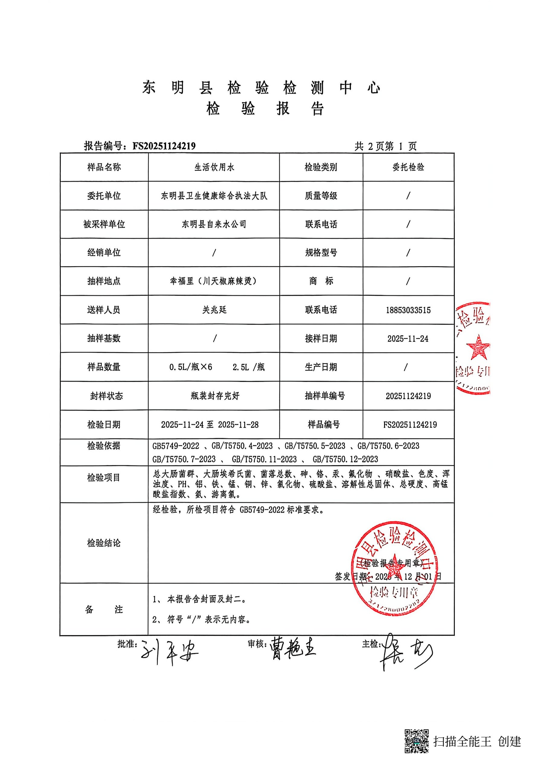 2025年第四季度管网末梢水检测幸福里取水口(季检)