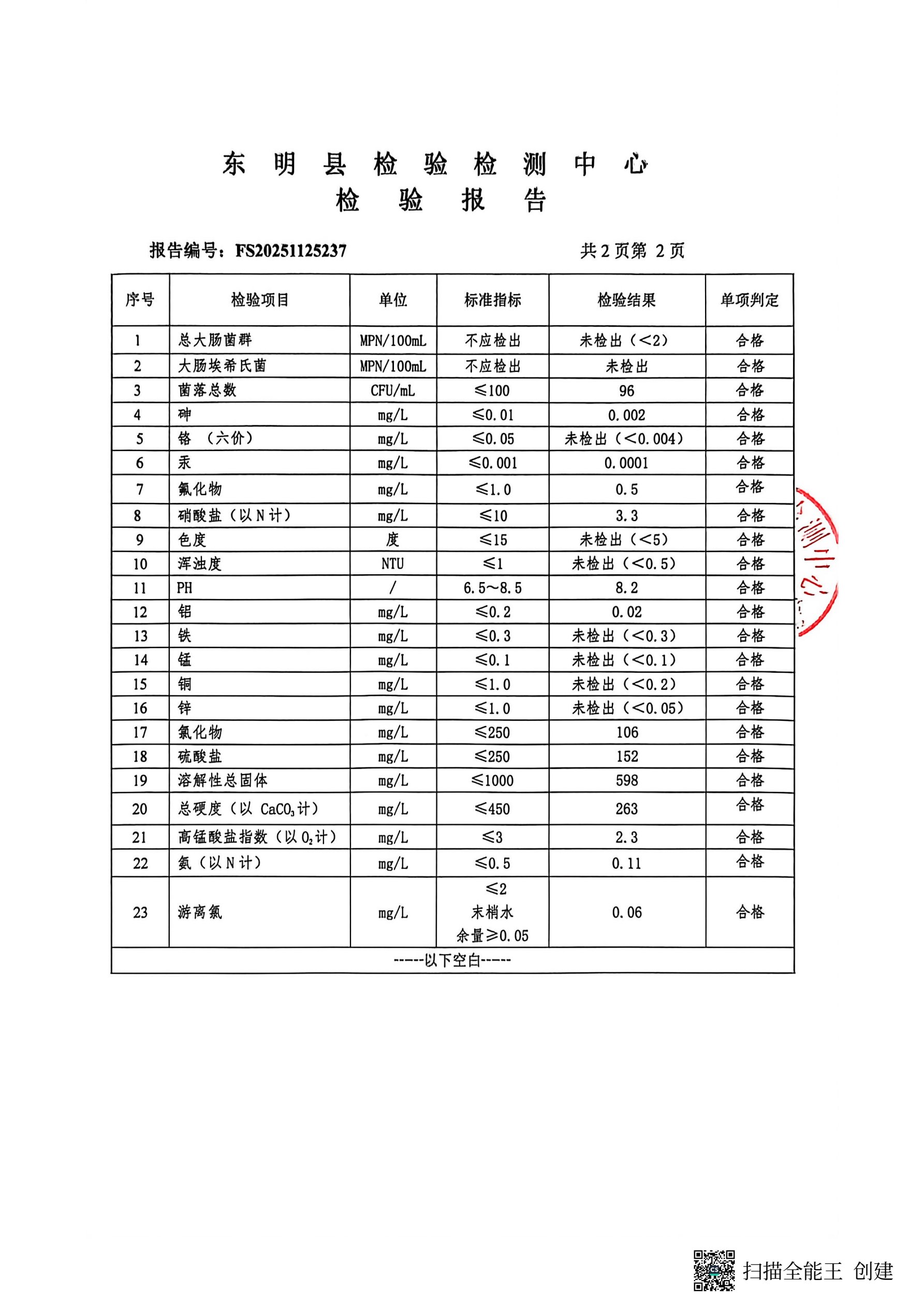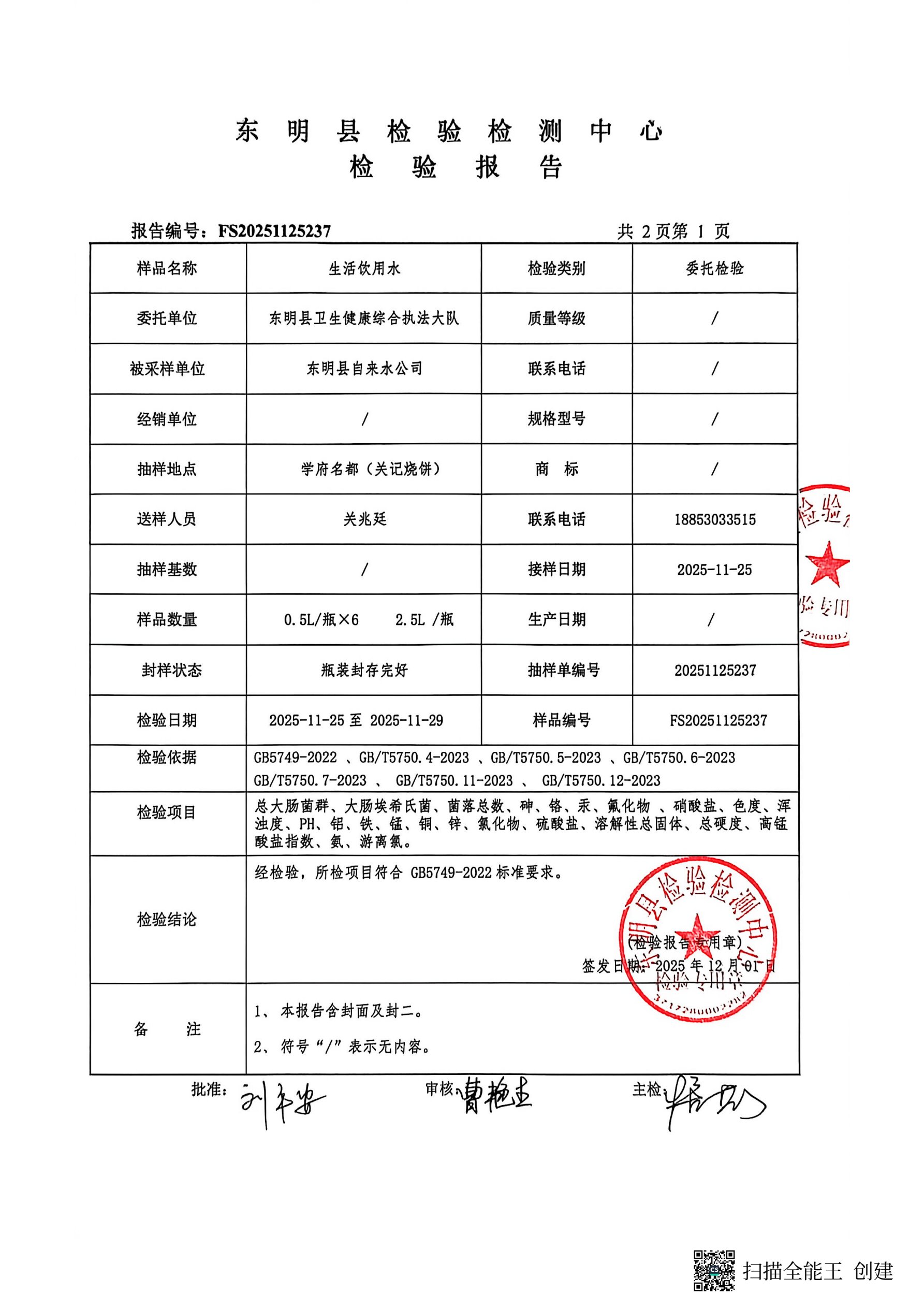 2025年第四季度管网末梢水检测学府名都取水口(季检)