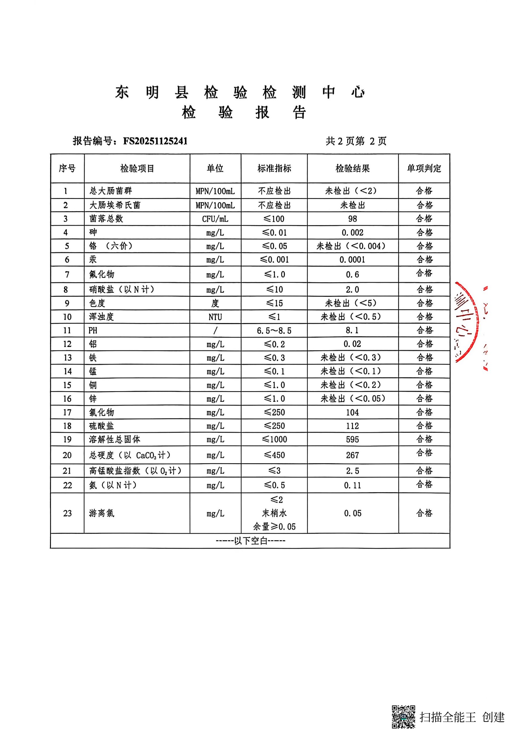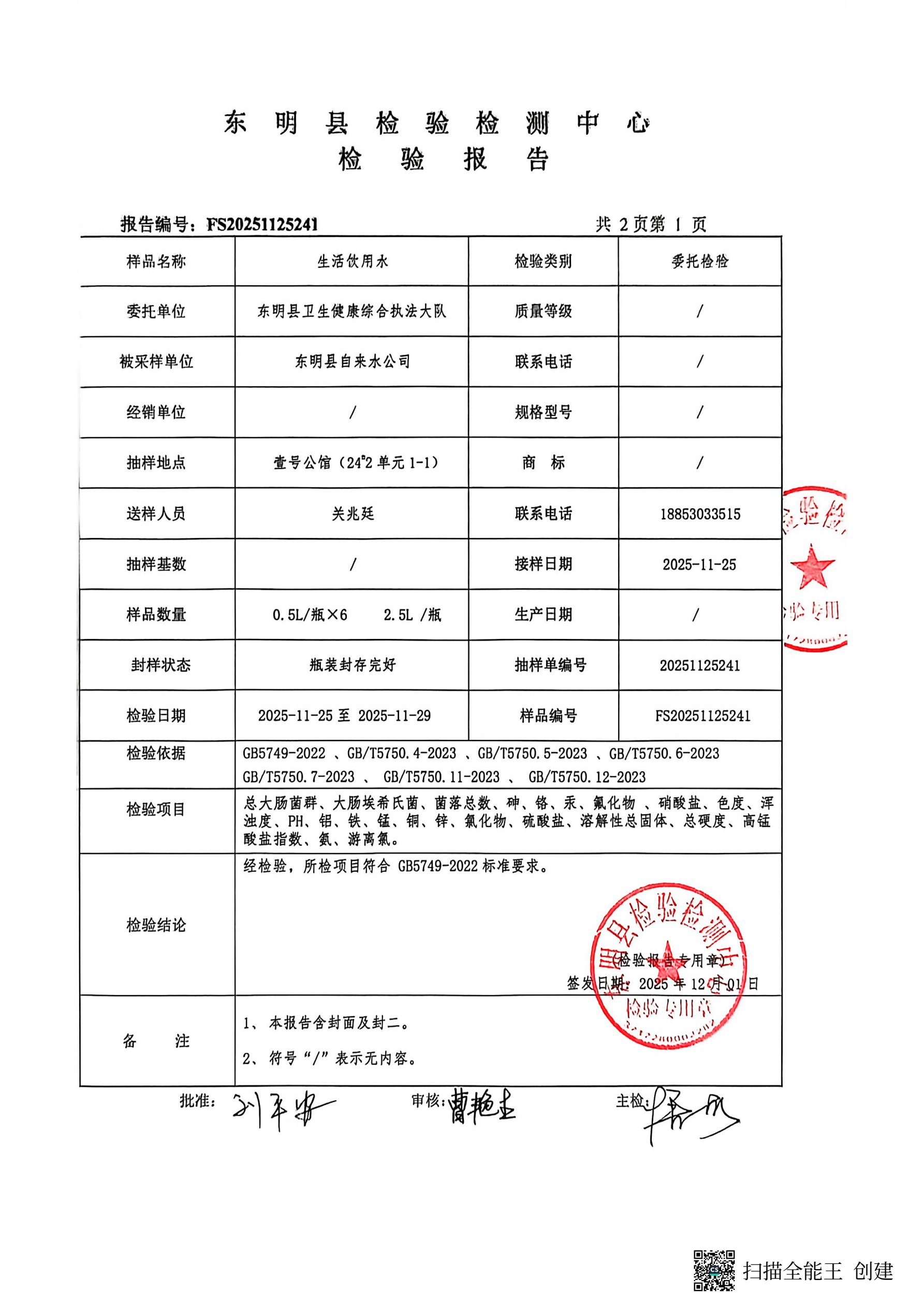 2025年第四季度管网末梢水检测壹号公馆取水口(季检)