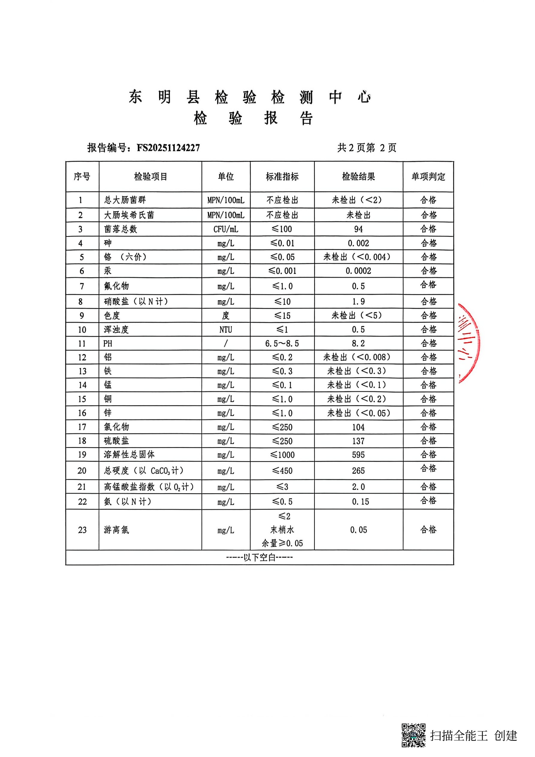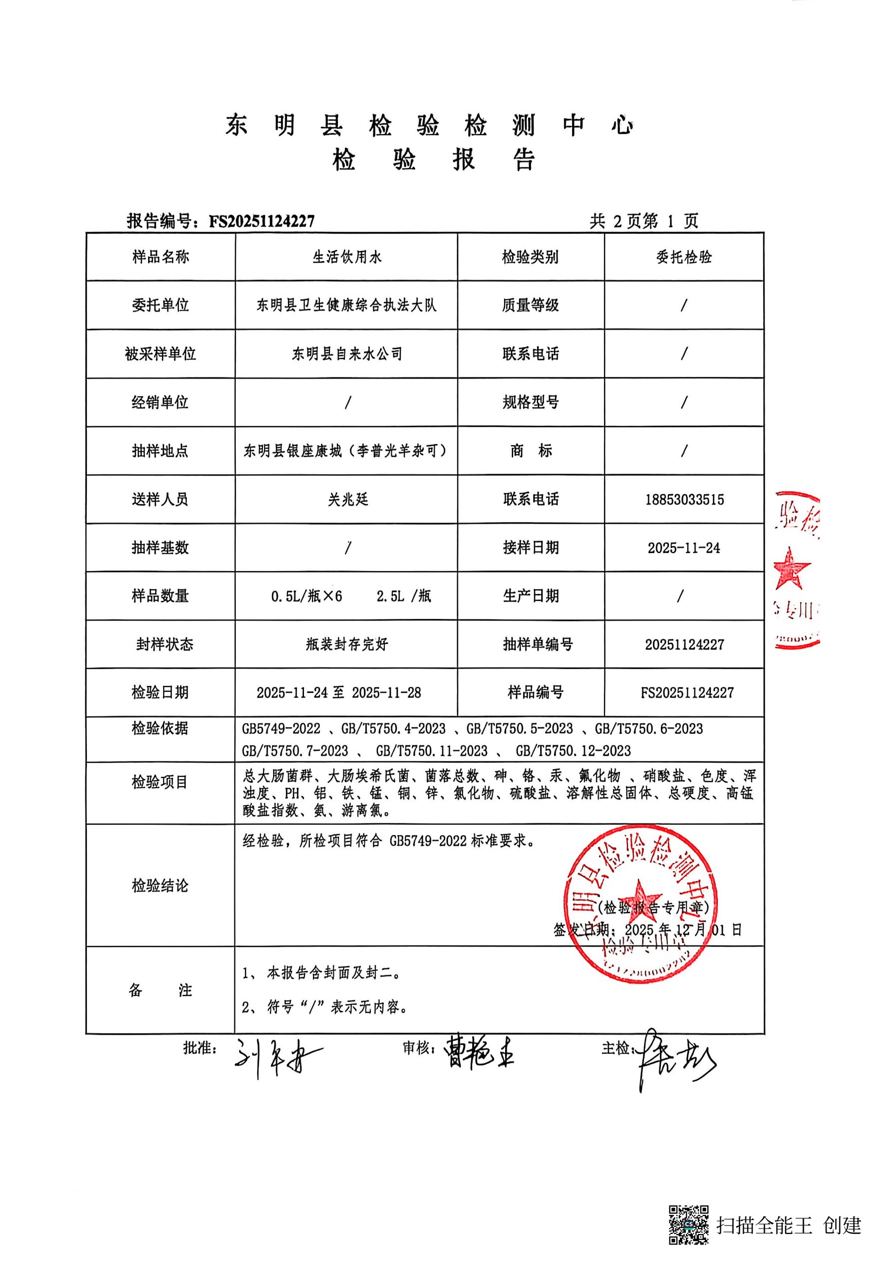2025年第四季度管网末梢水检测银座康城取水口(季检)