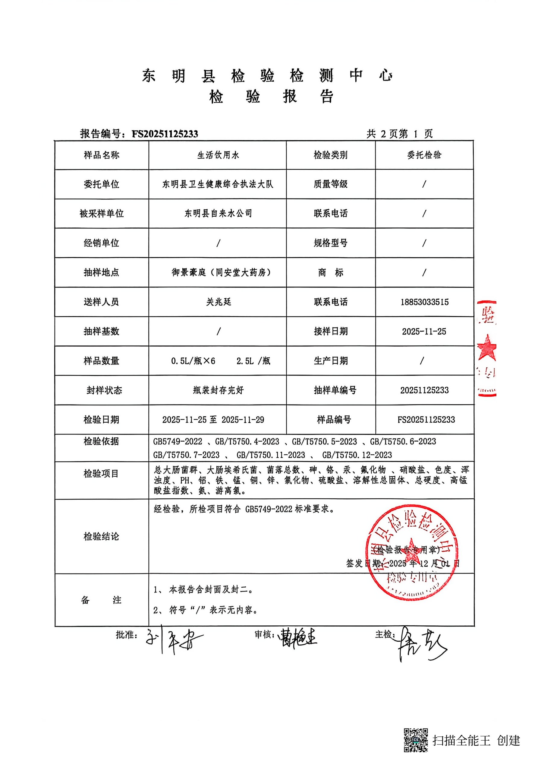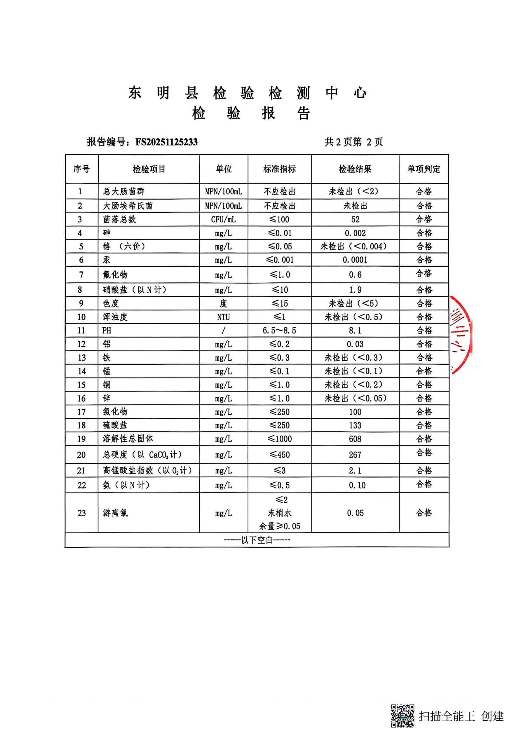 2025年第四季度管网末梢水检测御景豪庭取水口(季检)