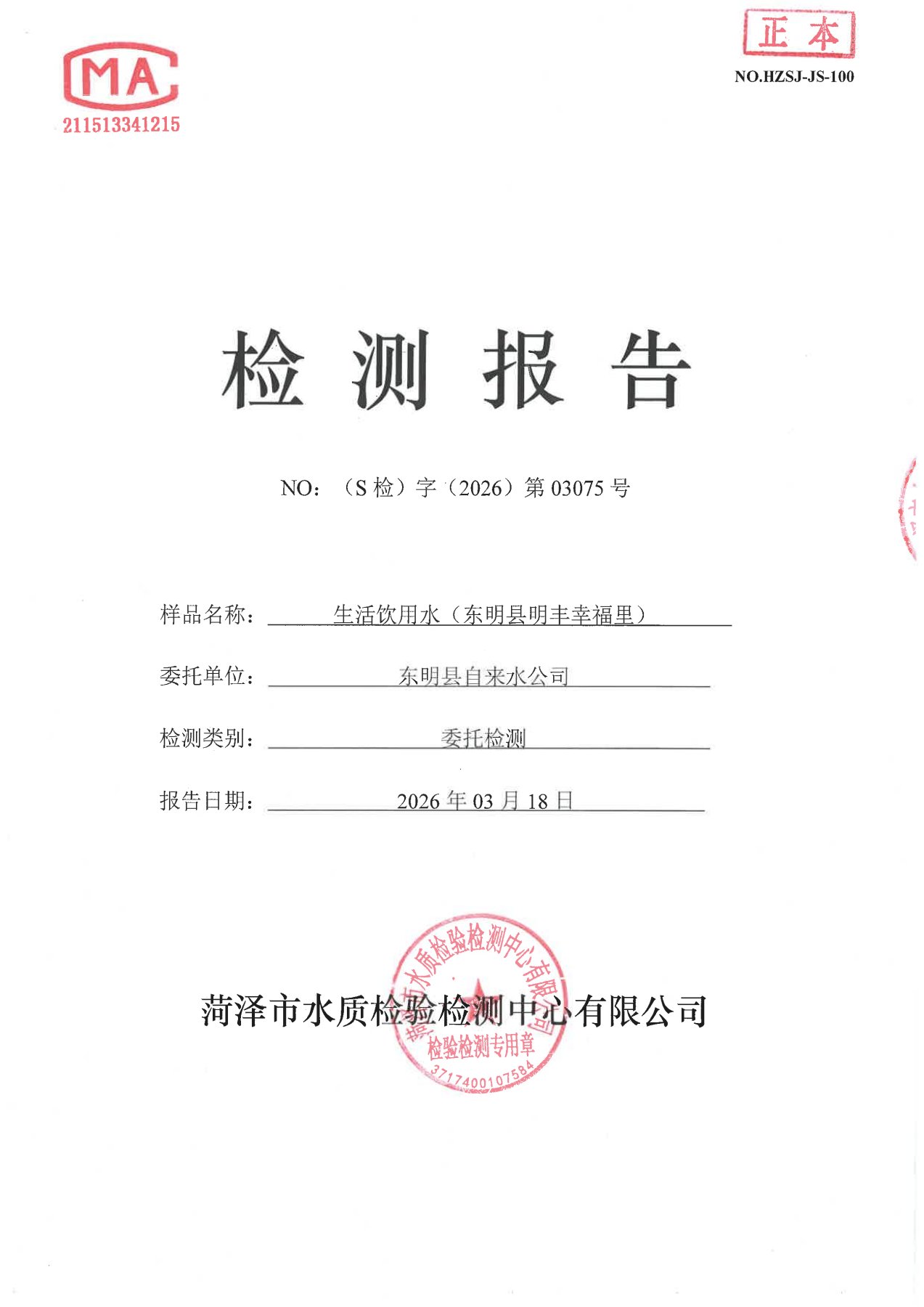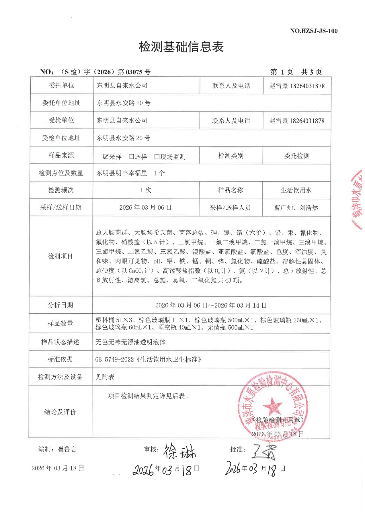 2026年3月水质检测报告(月检)